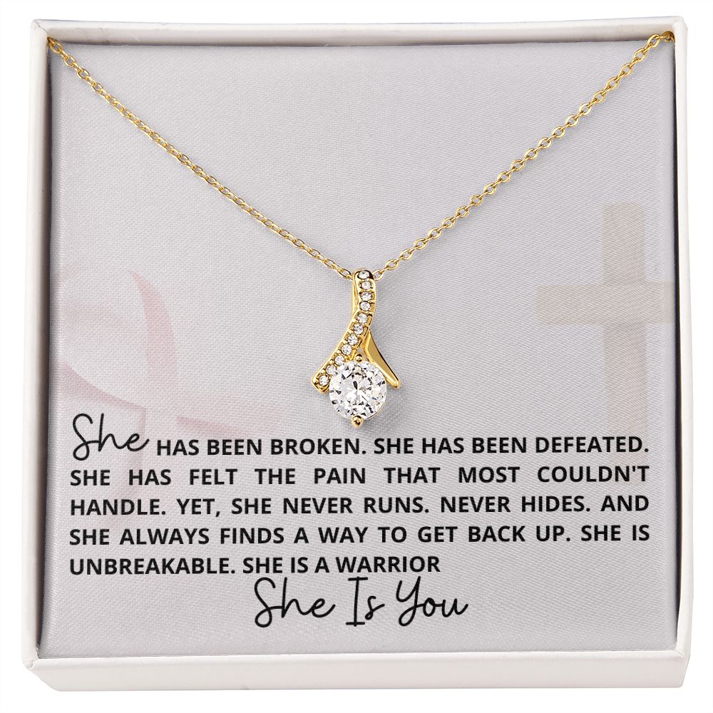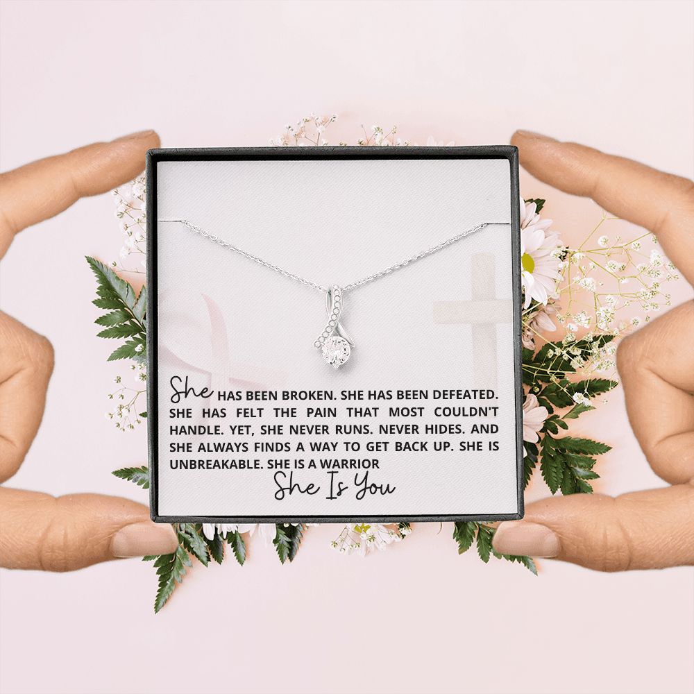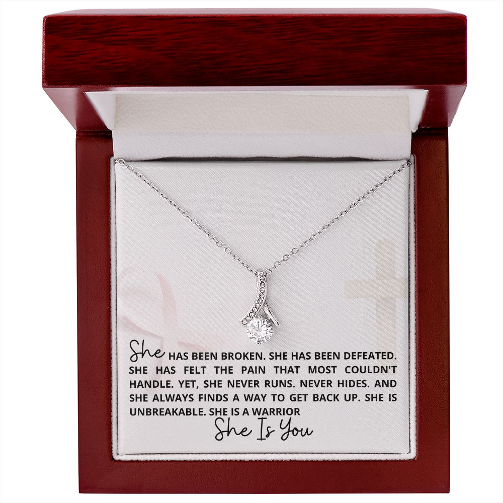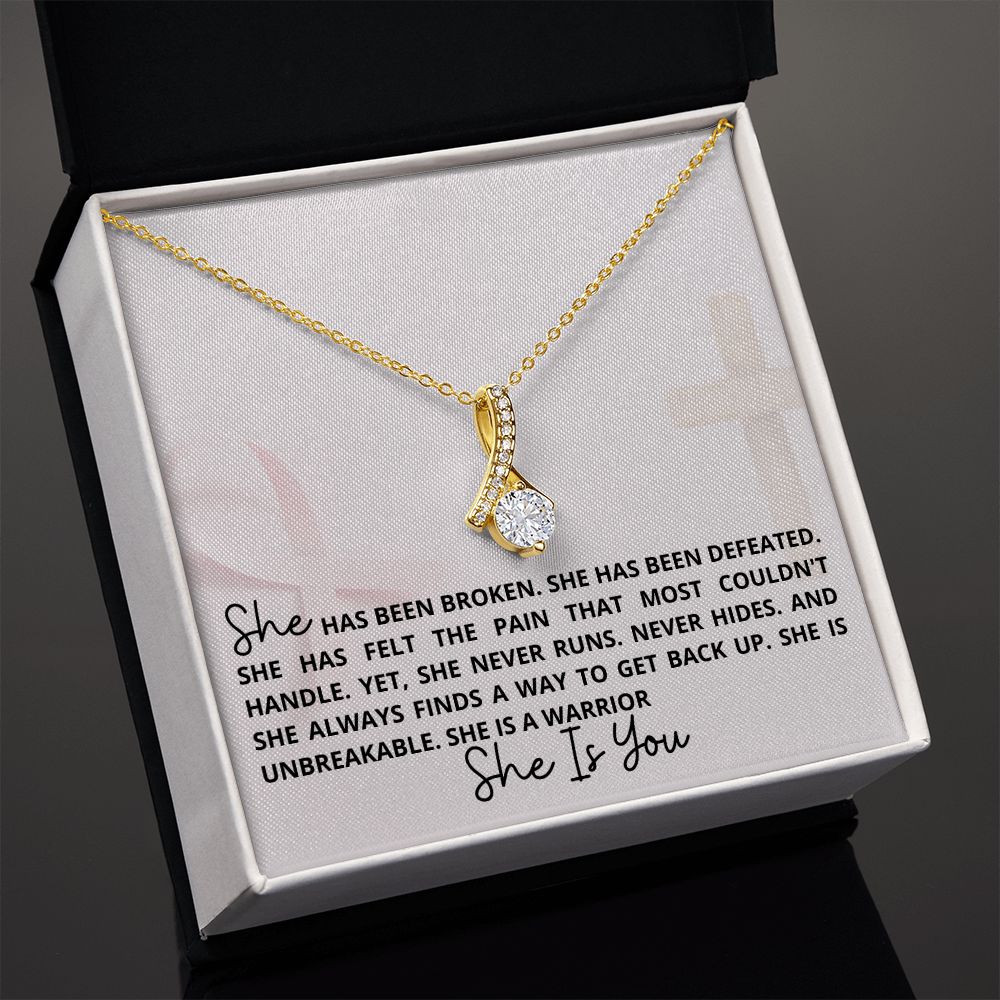 Imagine her reaction when she opens this stunning gift! The Alluring Beauty necklace features a petite ribbon shaped pendant that is sure to dazzle your special someone. Whether it's a birthday or anniversary, make sure to get her a gift she will love for years to come.