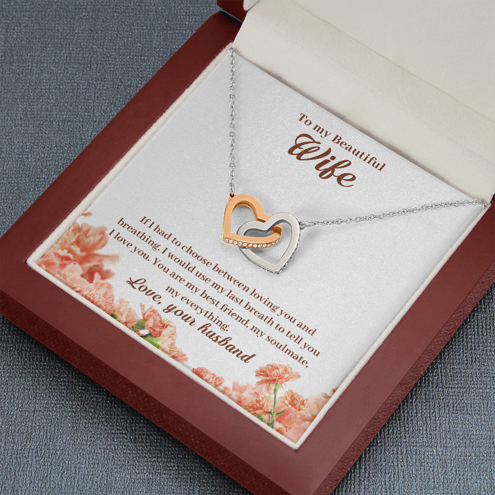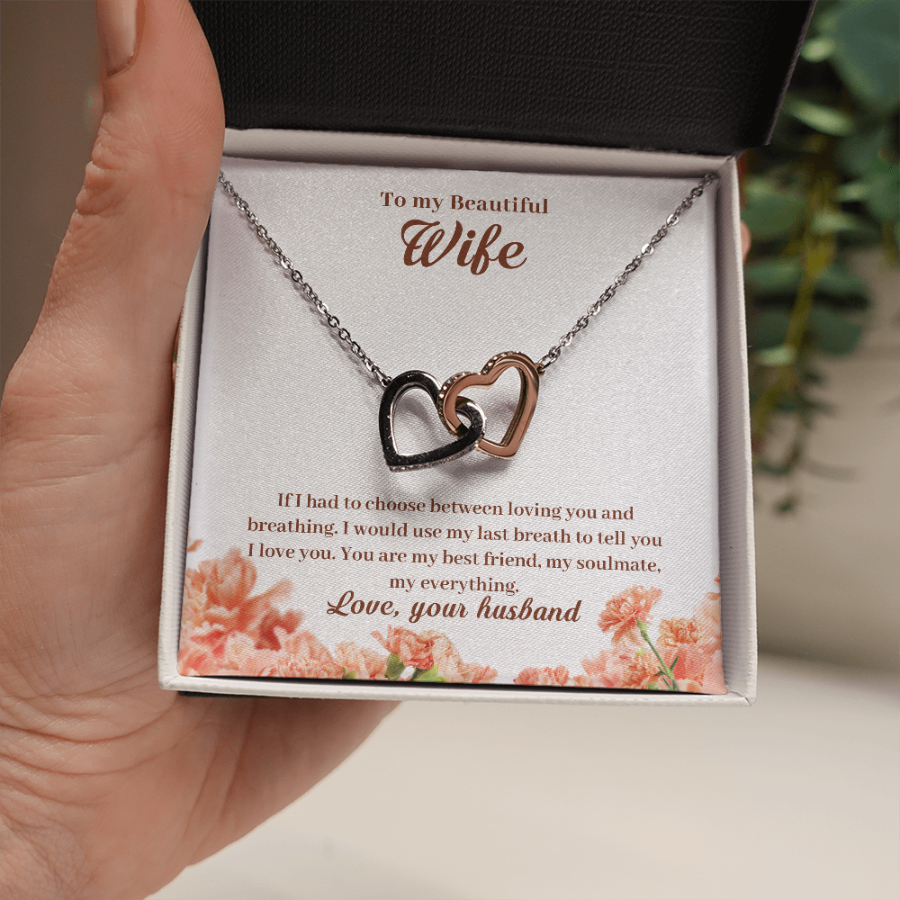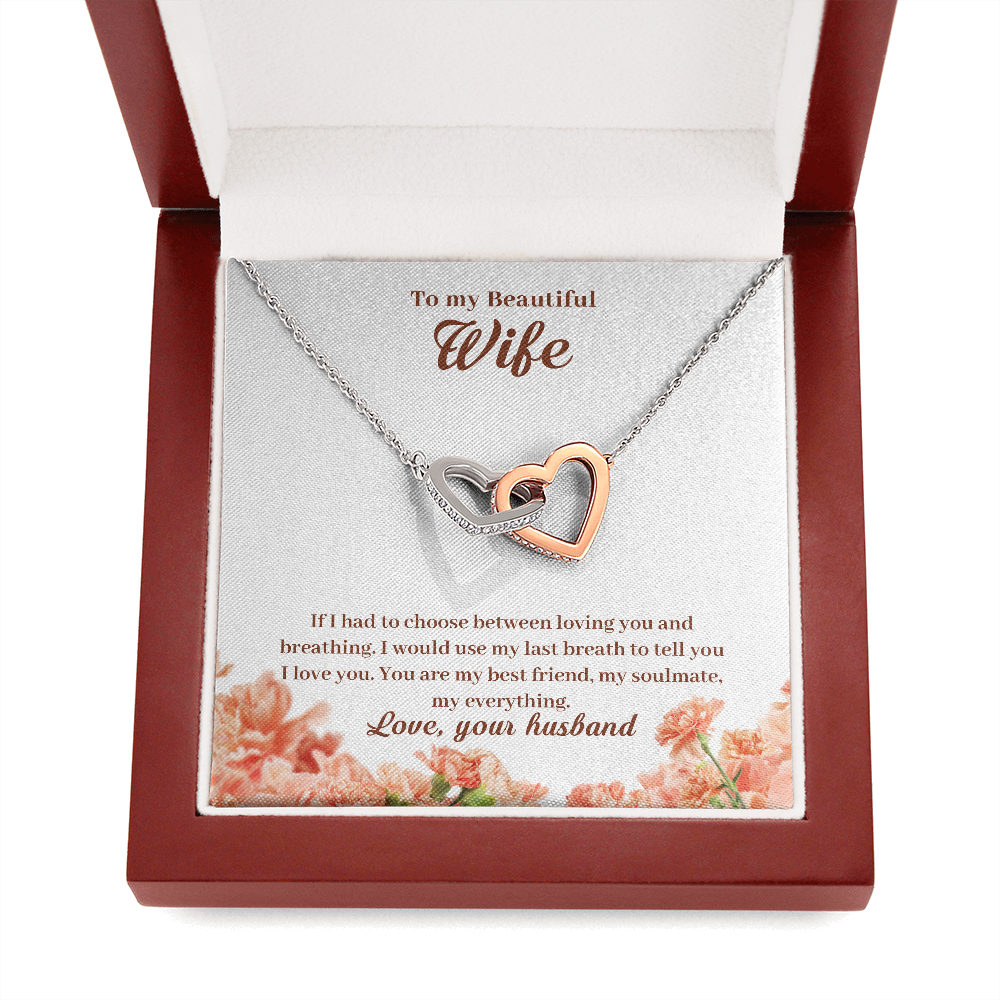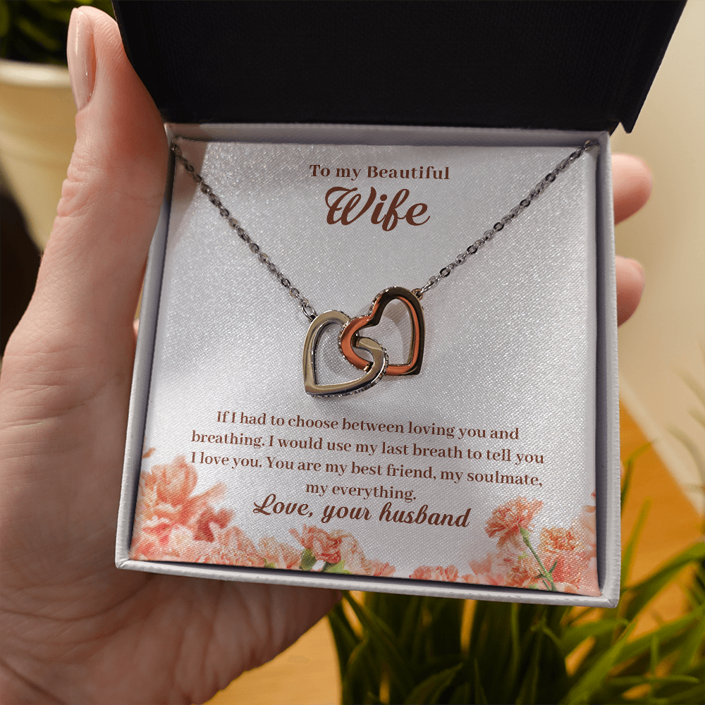 Two hearts embellished with Cubic Zirconia stones, interlocked together as a symbol of never-ending love. Made with high quality polished surgical steel. Cable chain measures 18 inches with a 4 inch extension, and fastens with a lobster clasp.