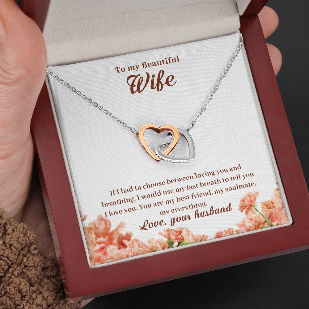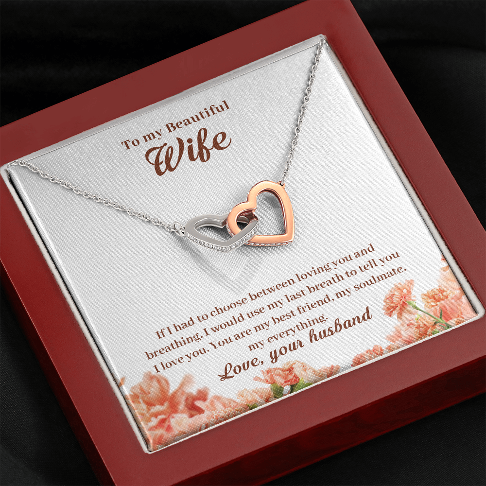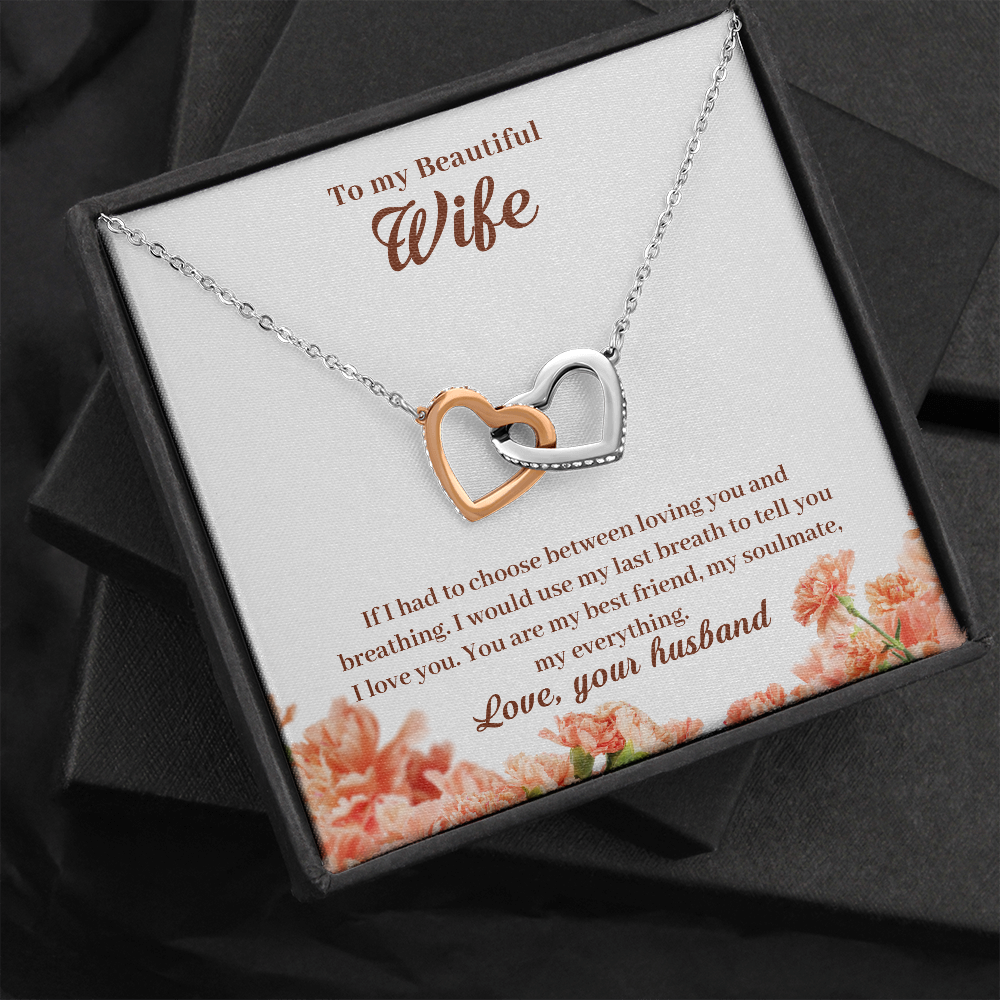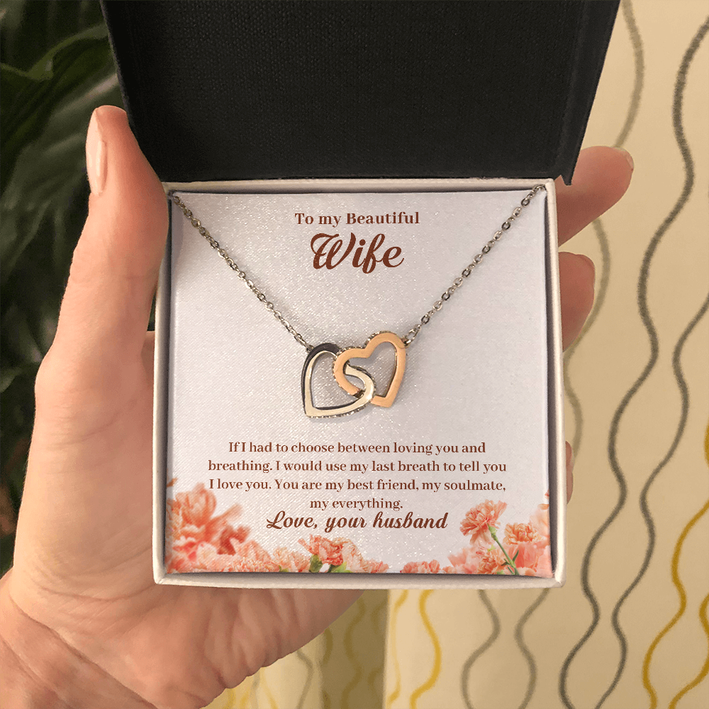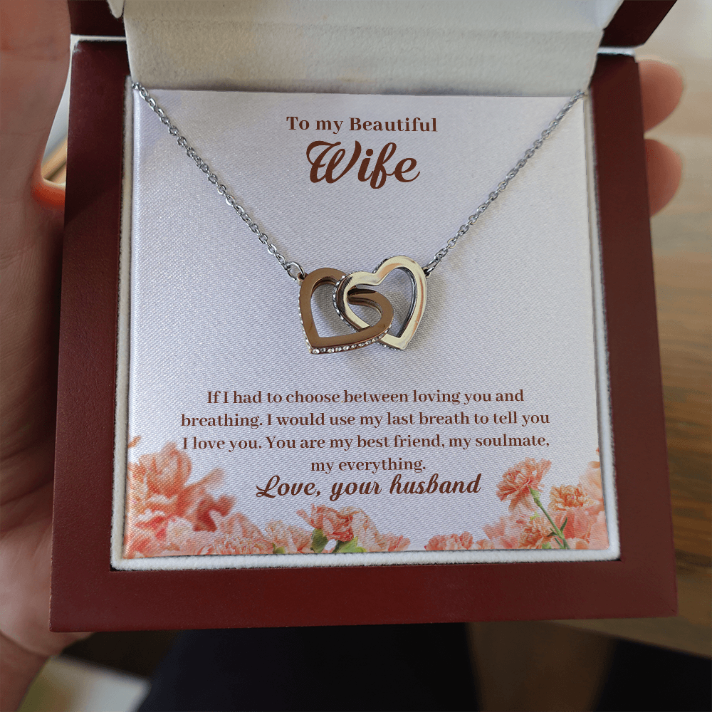 Two hearts embellished with Cubic Zirconia stones, interlocked together as a symbol of never-ending love. Made with high quality polished surgical steel. Cable chain measures 18 inches with a 4 inch extension, and fastens with a lobster clasp.