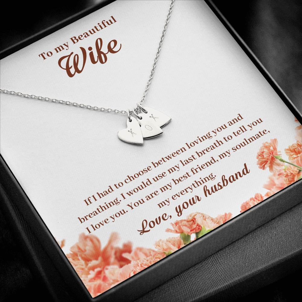 This sweet and dainty necklace is a special way to make her feel loved! Imagine the look on her face when she sees the darling asymmetrical hearts with personalized hand-stamped letters on the face of the charms.