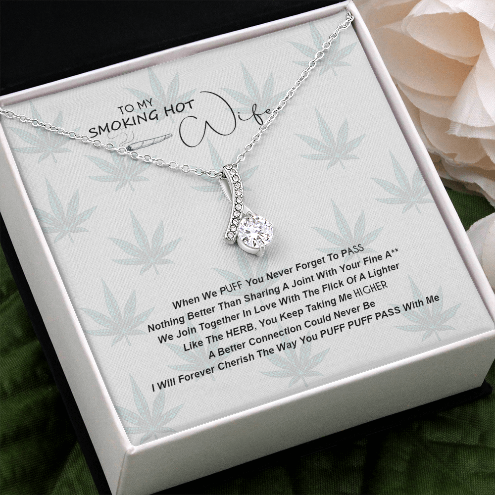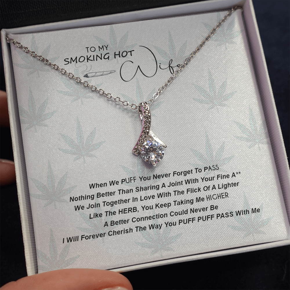 Melt her heart with this ALLURING BEAUTY necklace gift! The petite ribbon shaped pendant is finished with 14K white gold over stainless steel, and is embellished with dainty clear crystals surrounded by a sparkling 7mm round cut Cubic Zirconia.