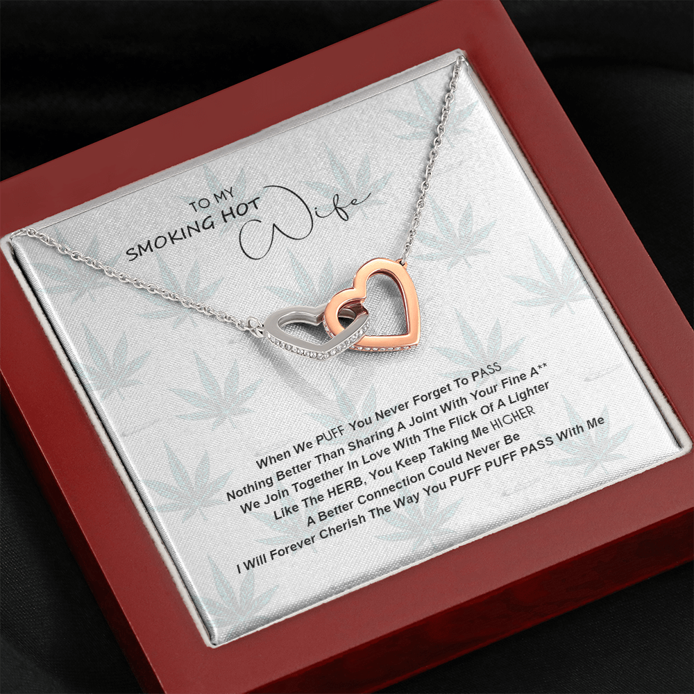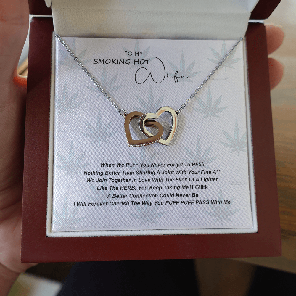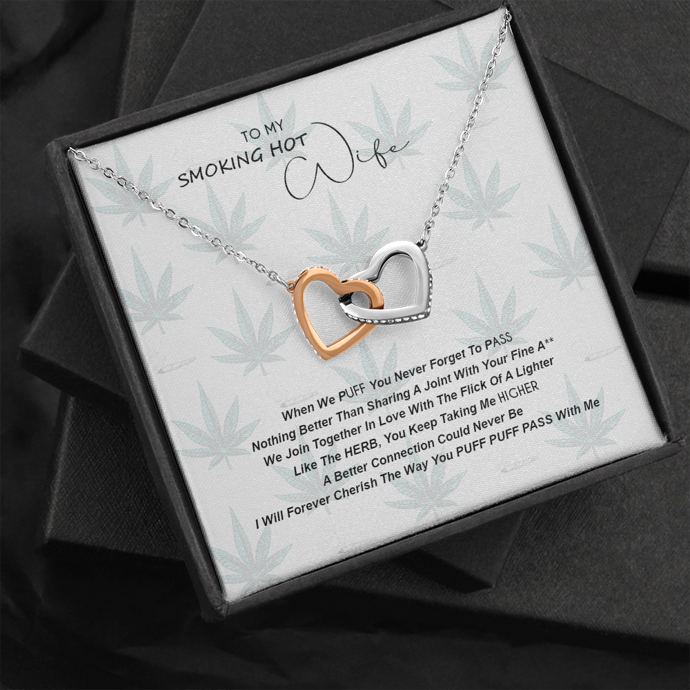 Two hearts embellished with Cubic Zirconia stones, interlocked together as a symbol of never-ending love. Made with high quality polished surgical steel. Cable chain measures 18 inches with a 4 inch extension, and fastens with a lobster clasp.
