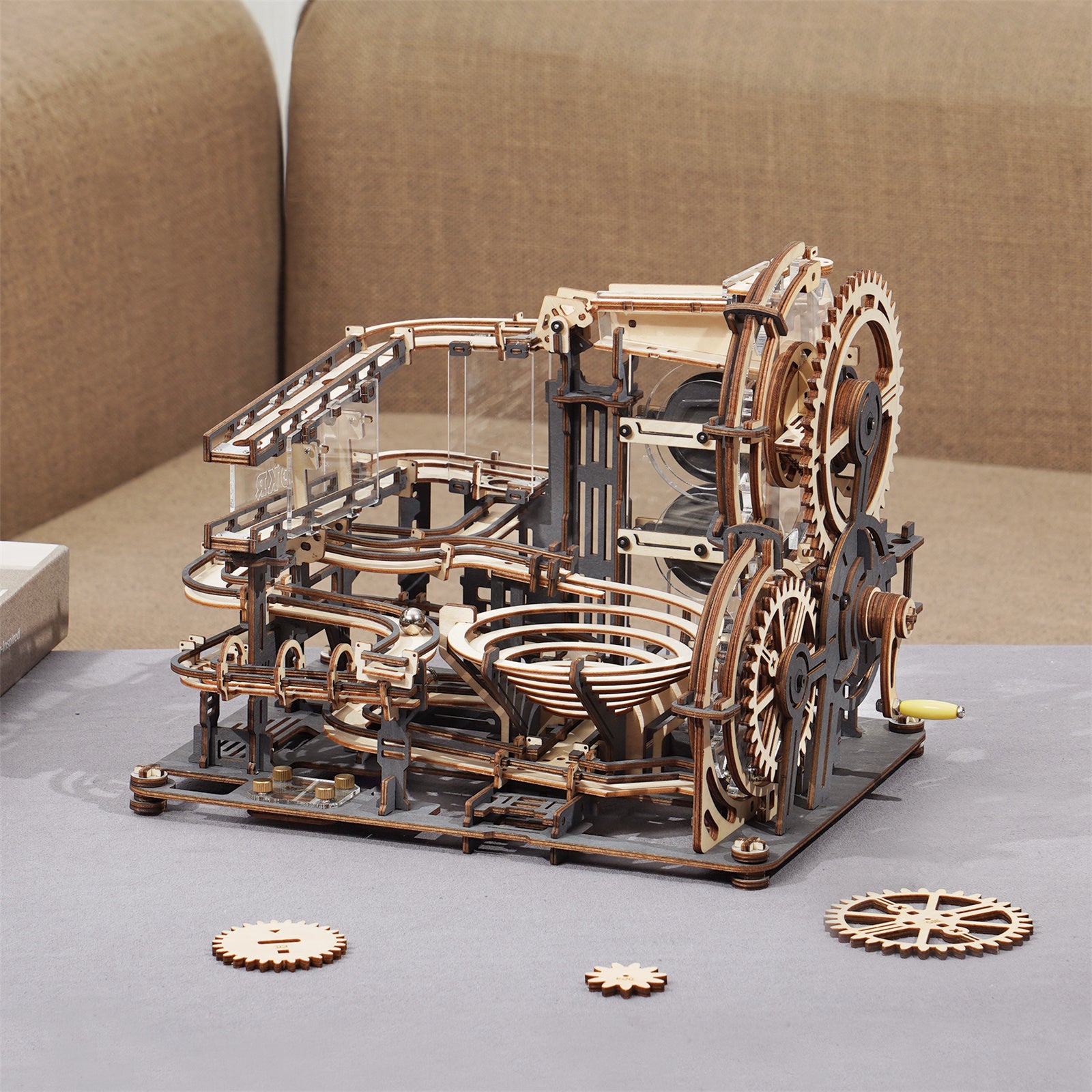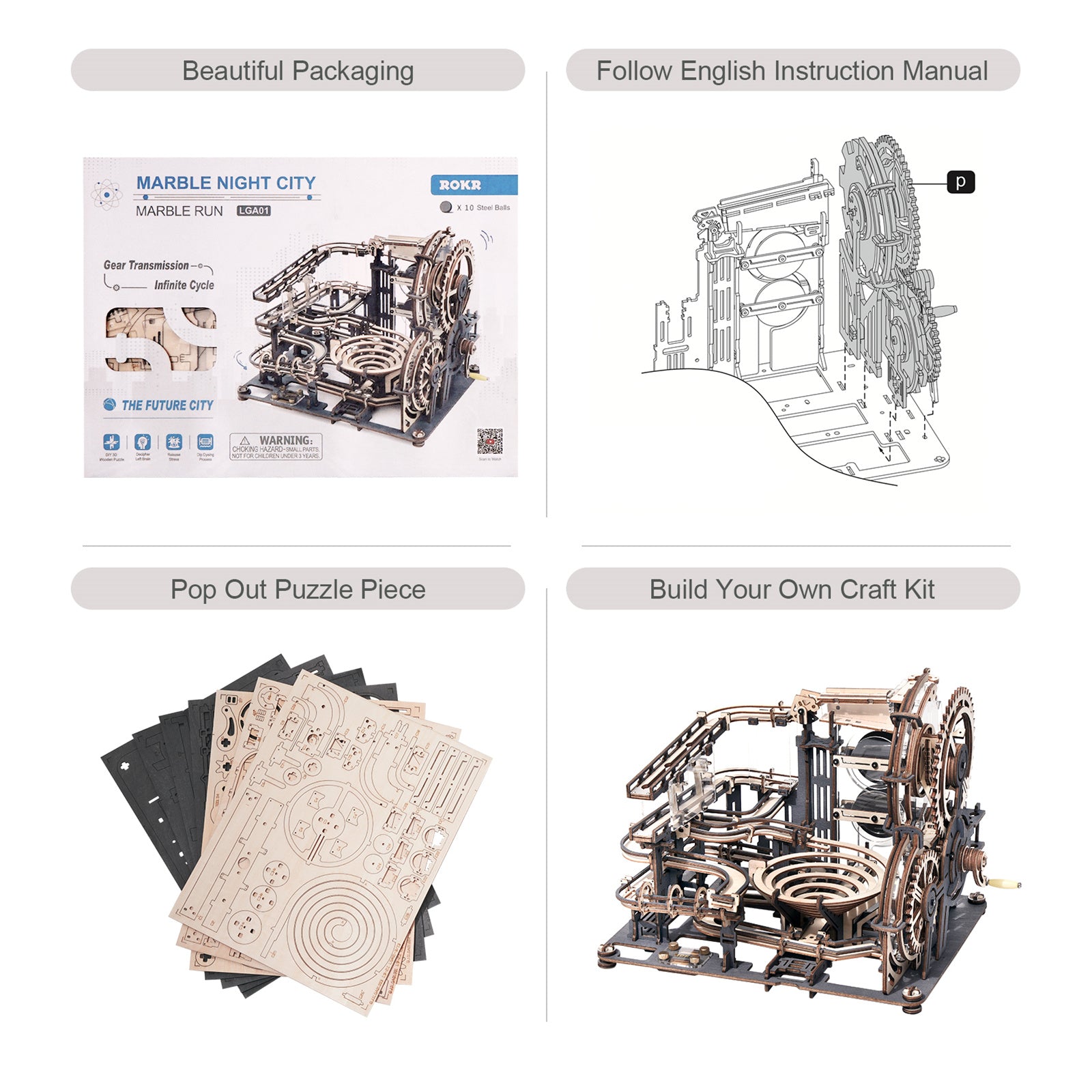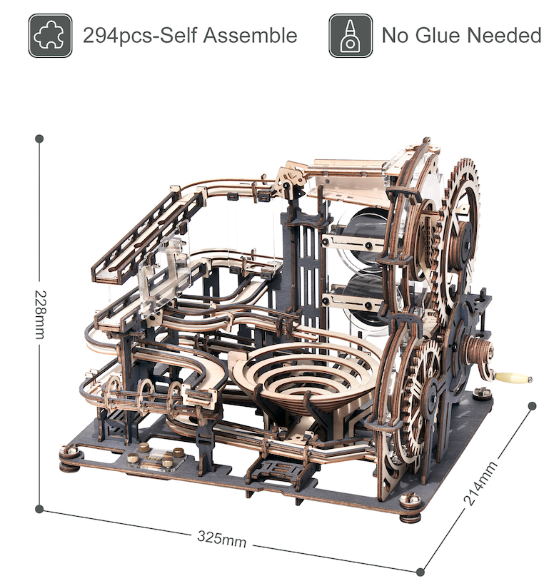 - [ORIGINAL ROKR MARBLE RUN] An artwork to be built with your own hands! Traditional wood material, retro waterwheel design. If you want to buy a 3D puzzle, then this classic model kit is the one that you can not miss!