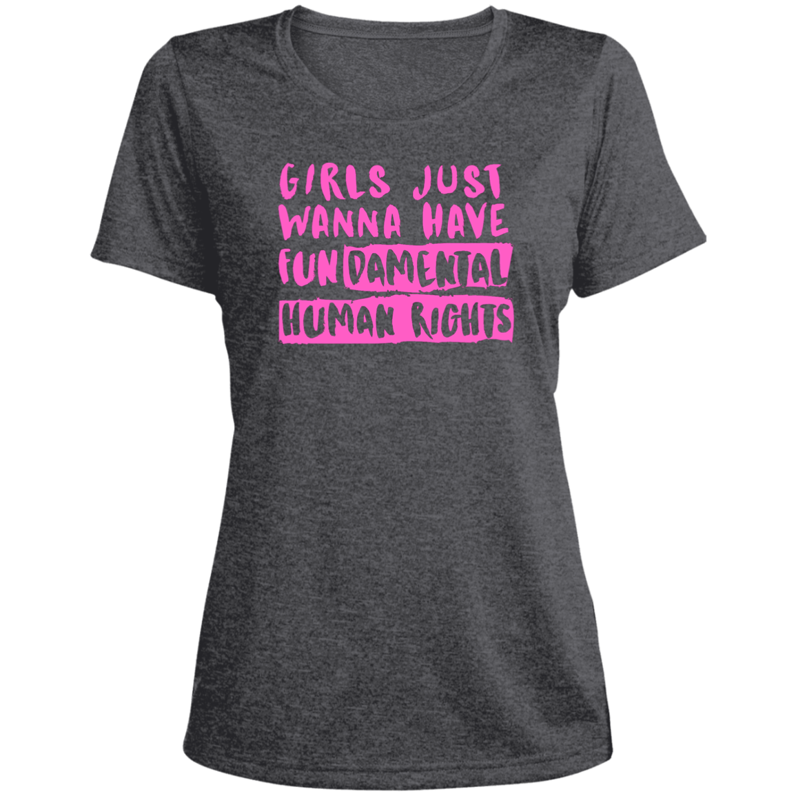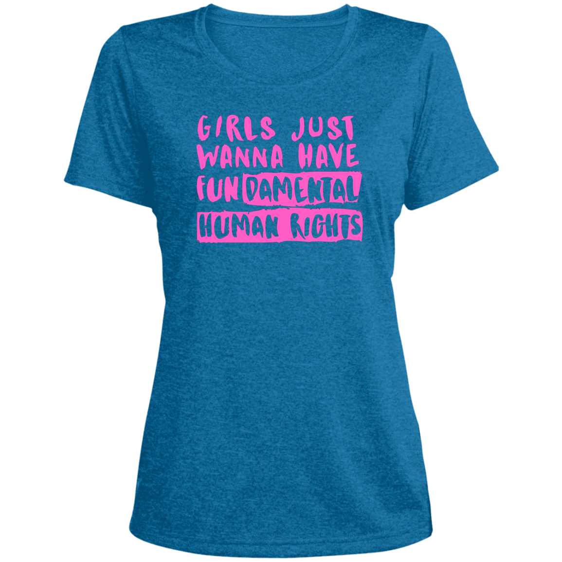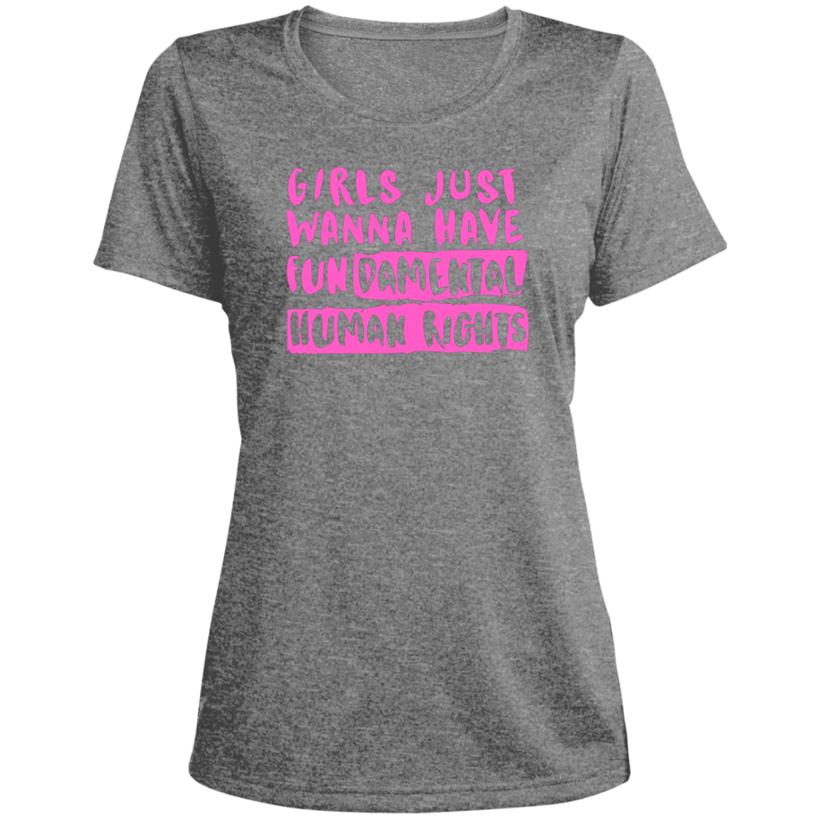 Girls Just Want To Have Fun... Ladies' Heather Scoop Neck Performance Tee