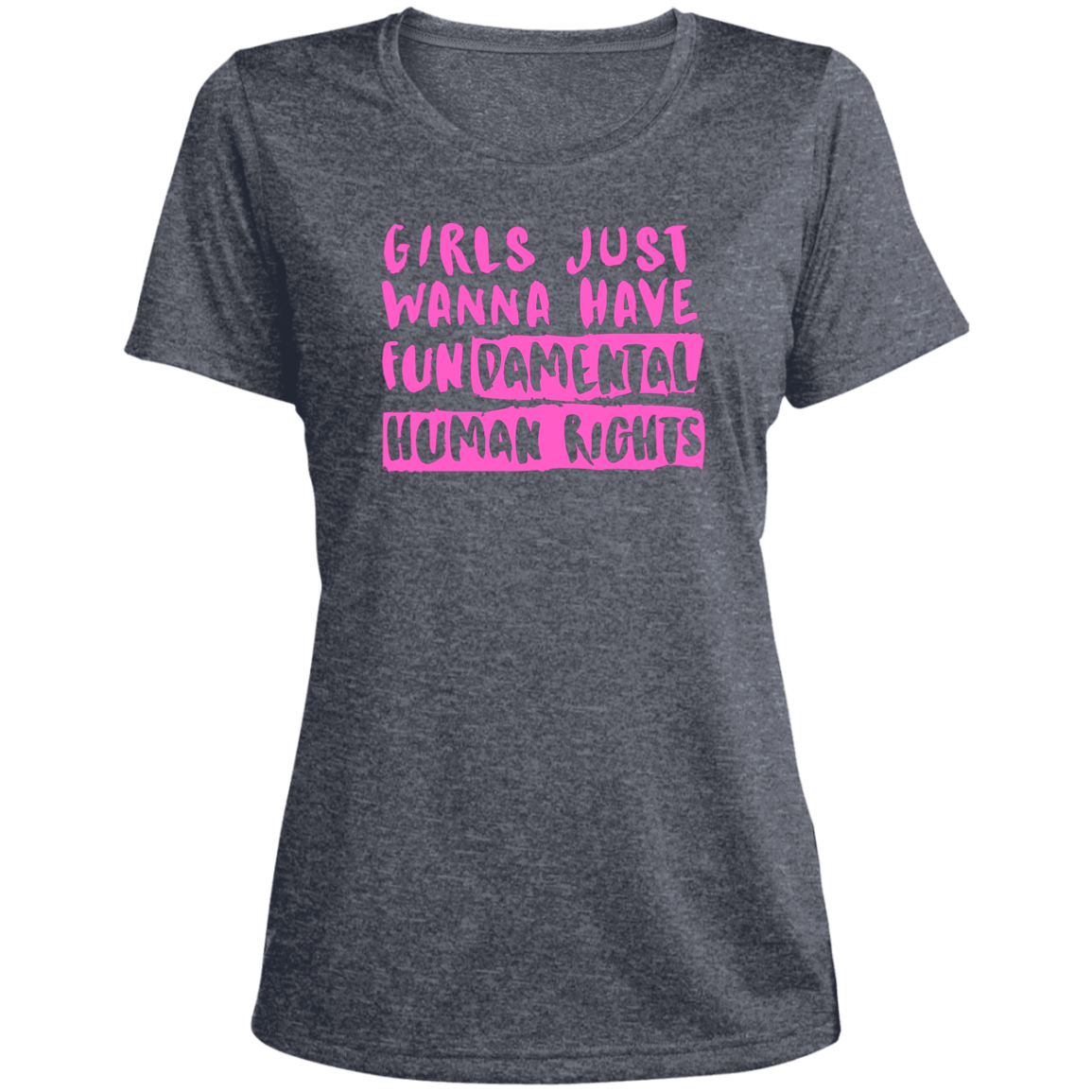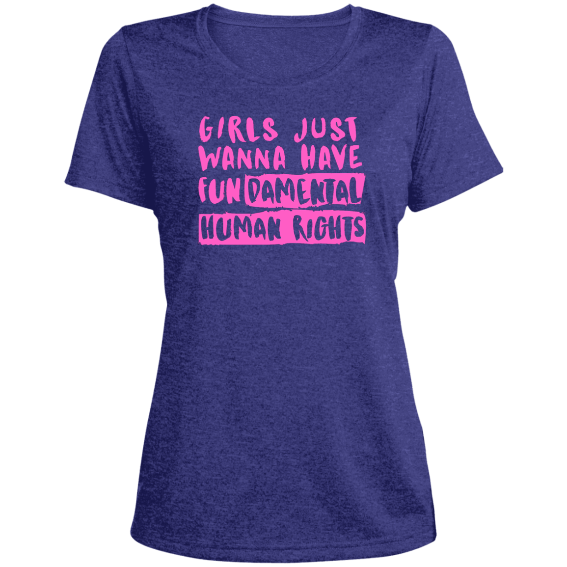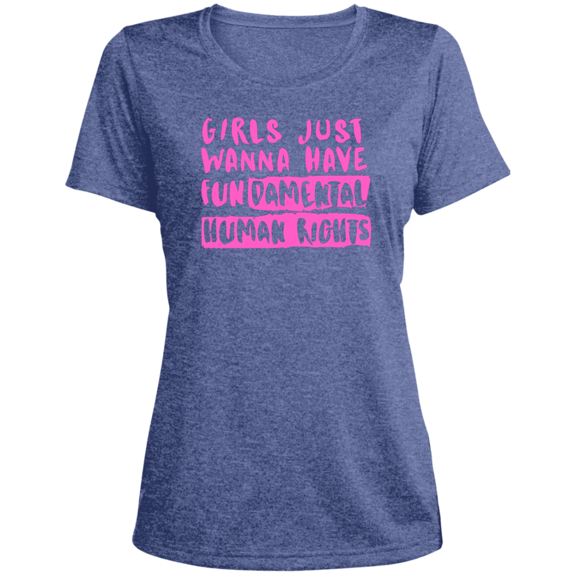Girls Just Want To Have Fun... Ladies' Heather Scoop Neck Performance Tee