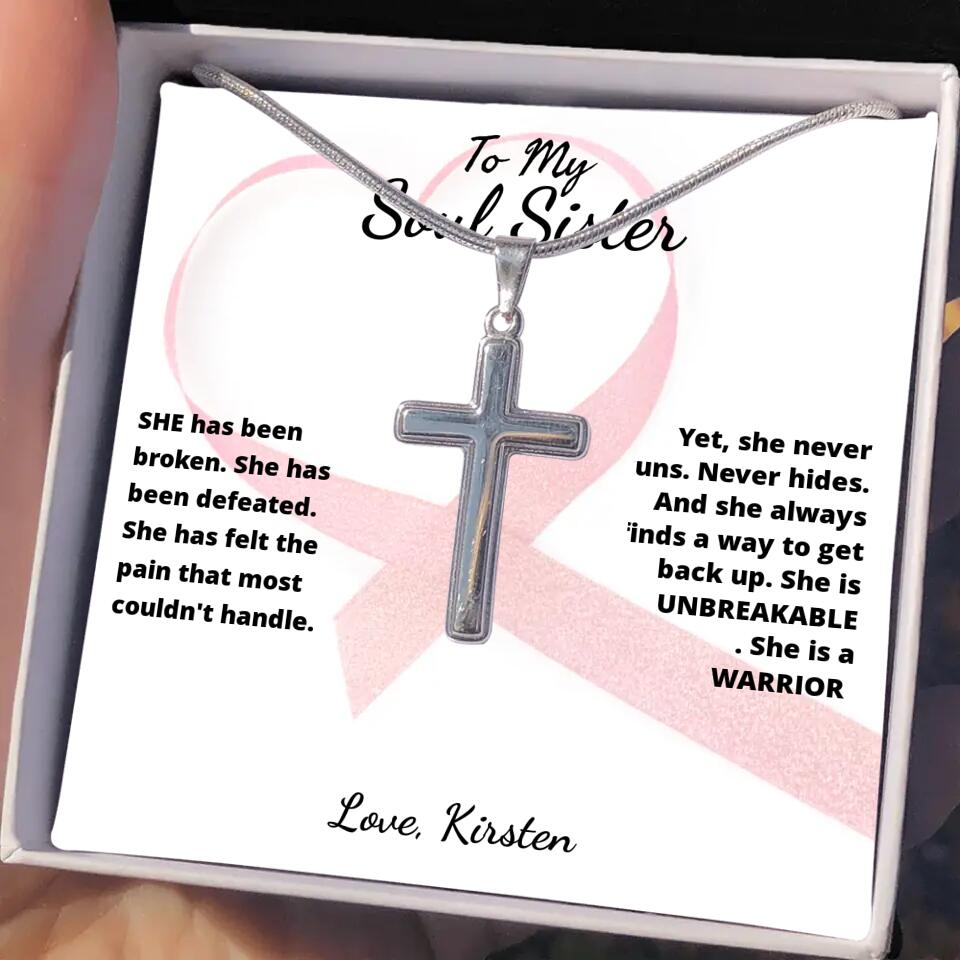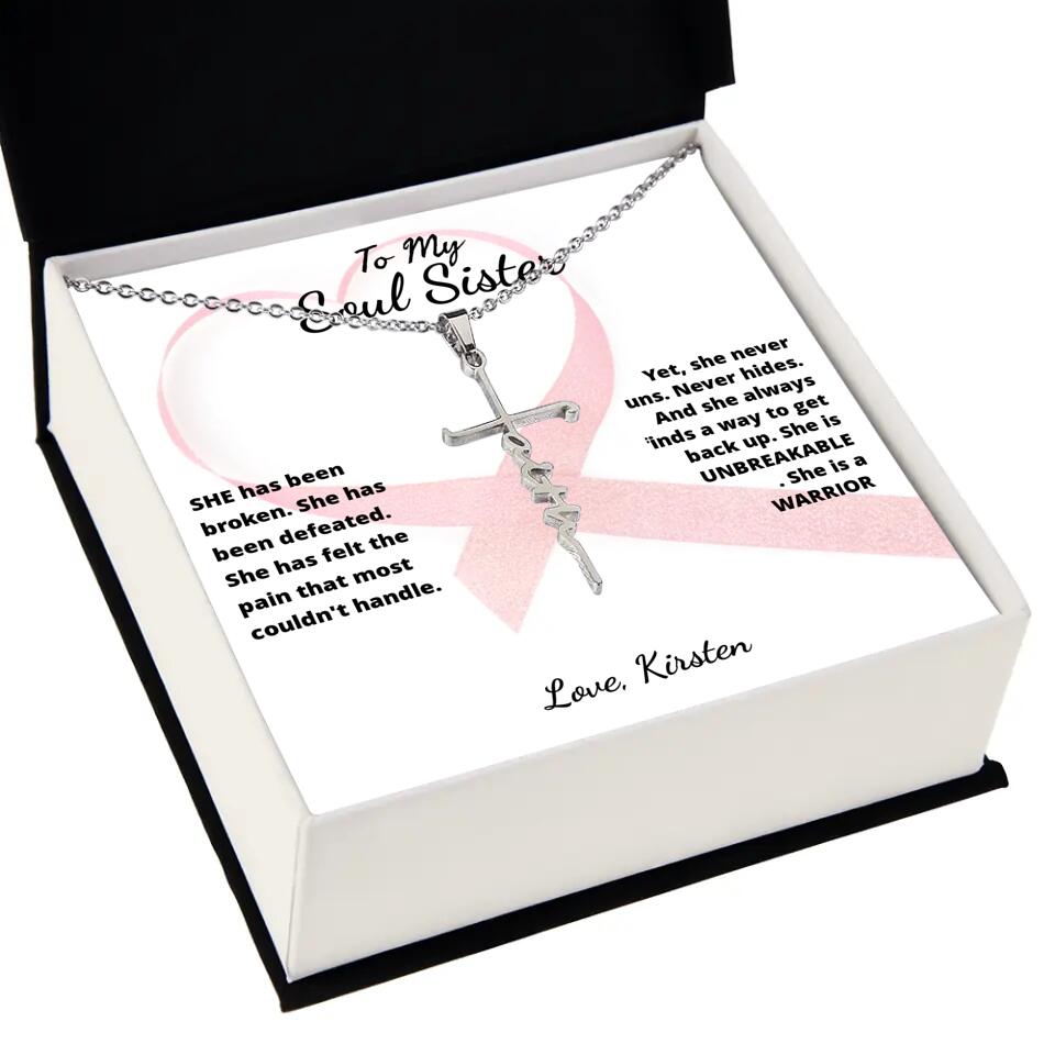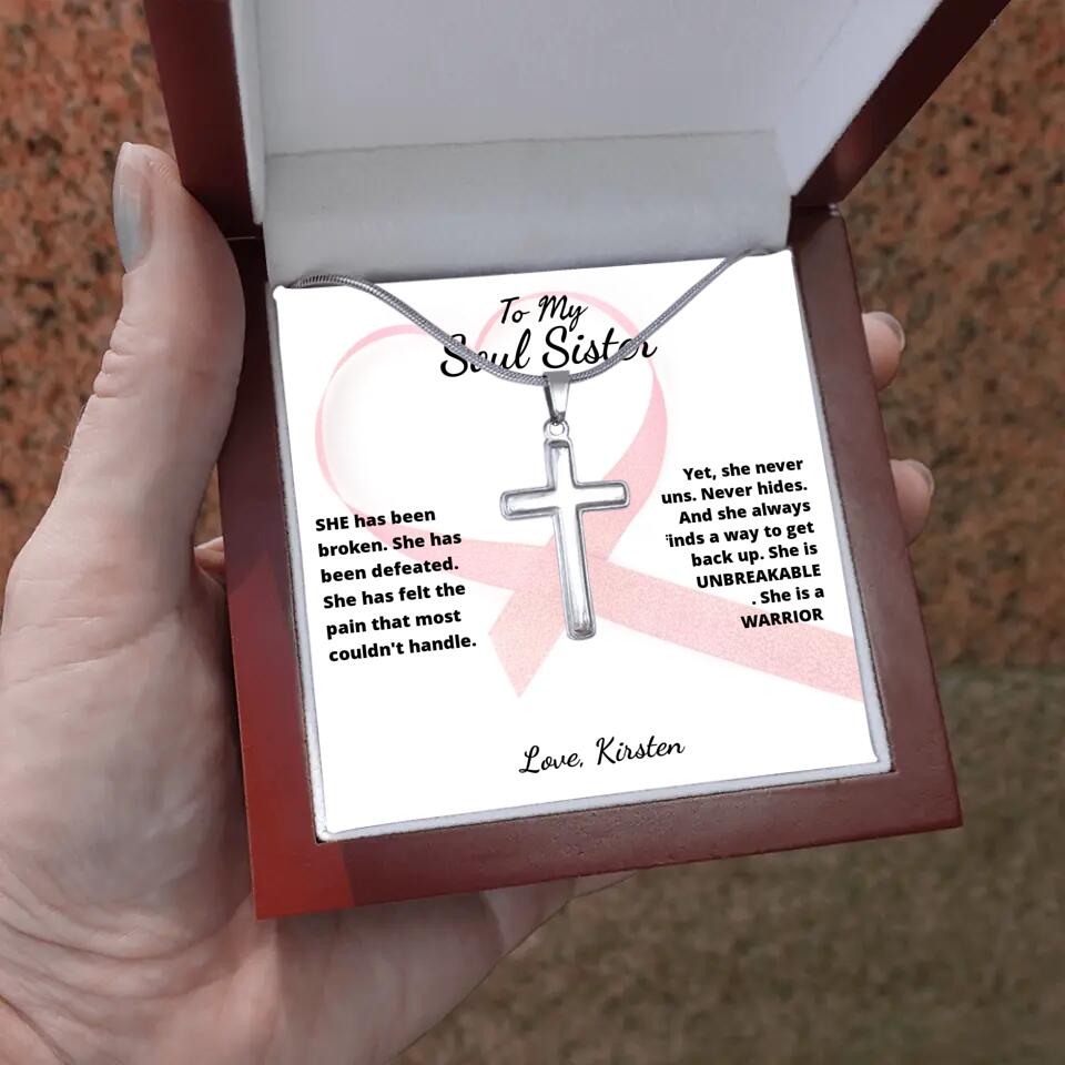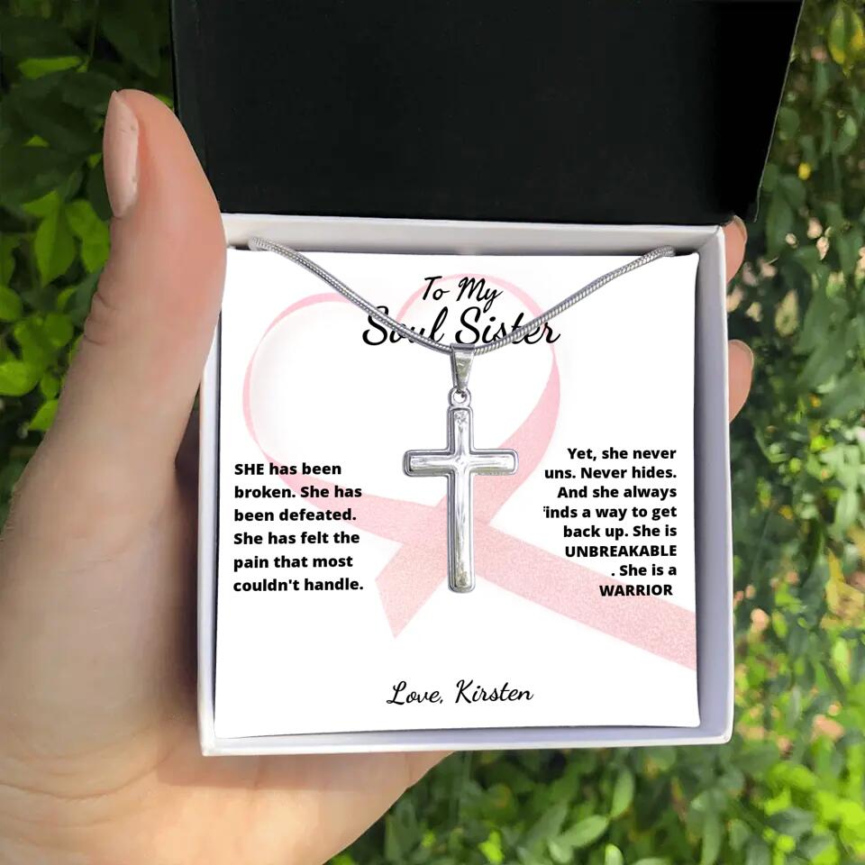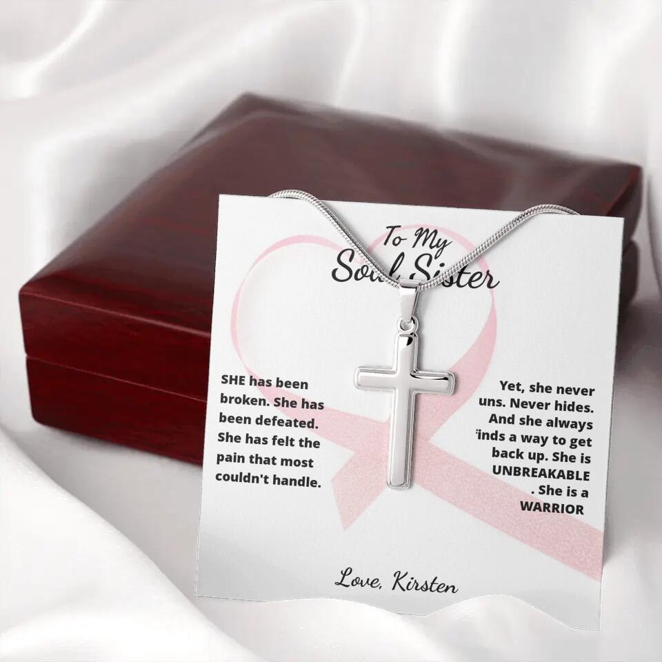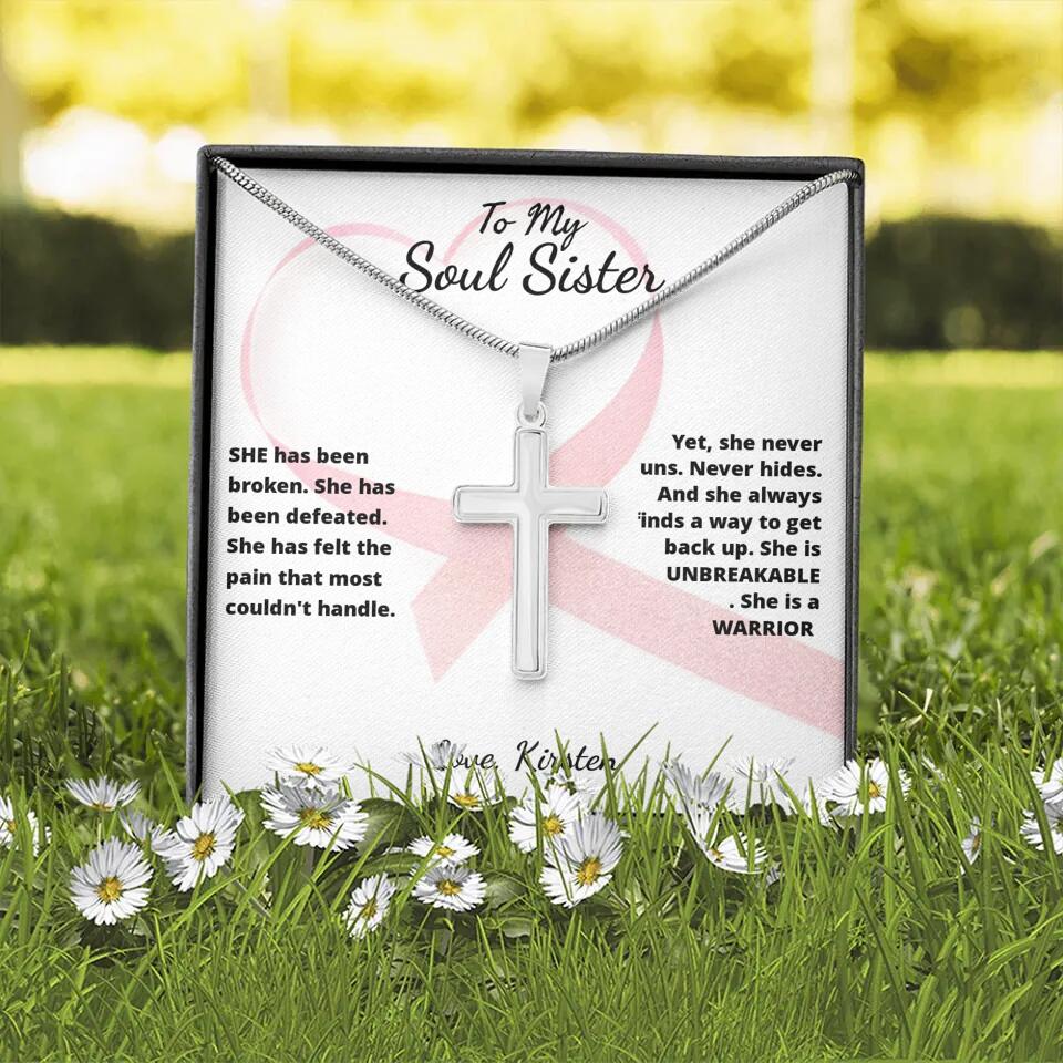 She Is A Warrior, She Is You... Cross Necklace with Personalized Message Card!