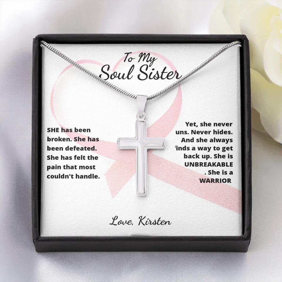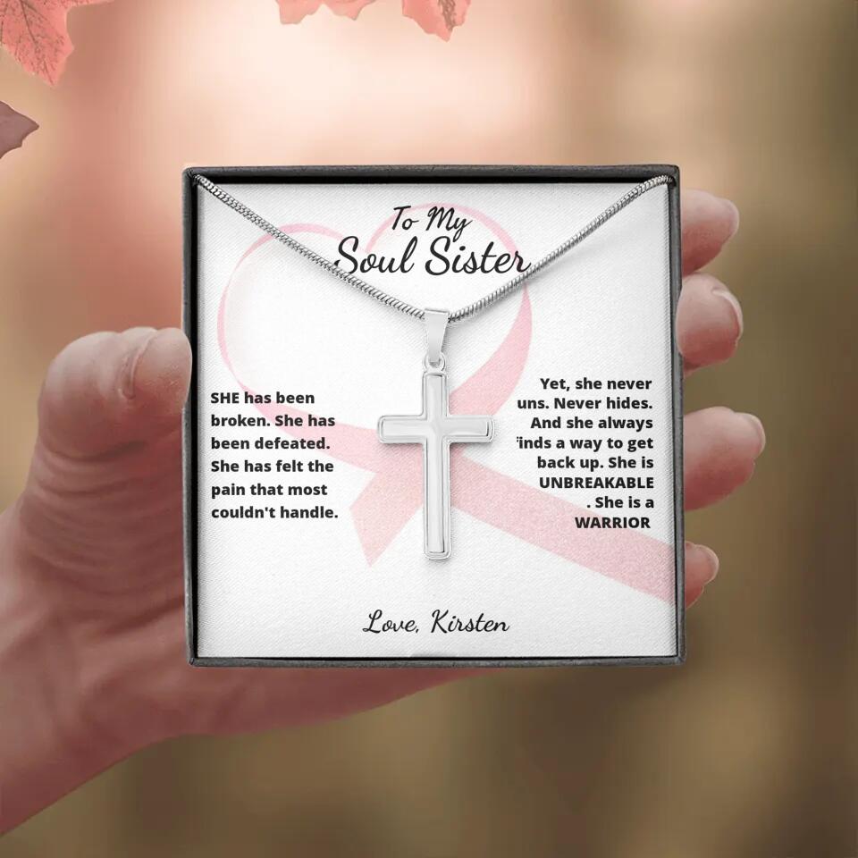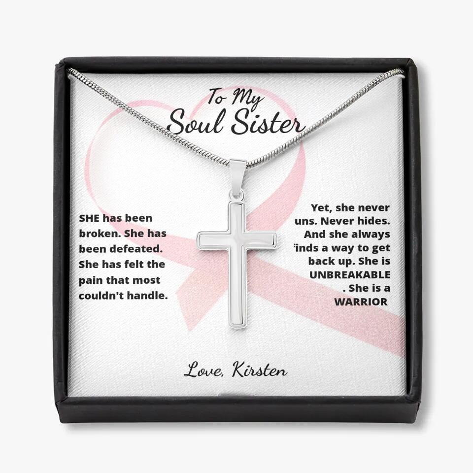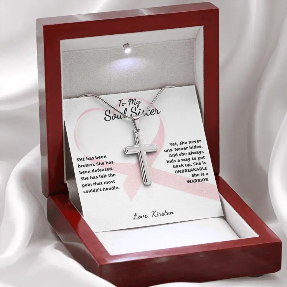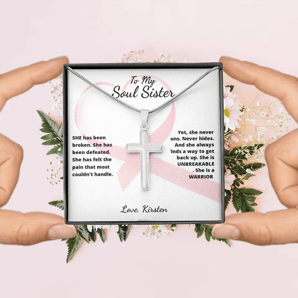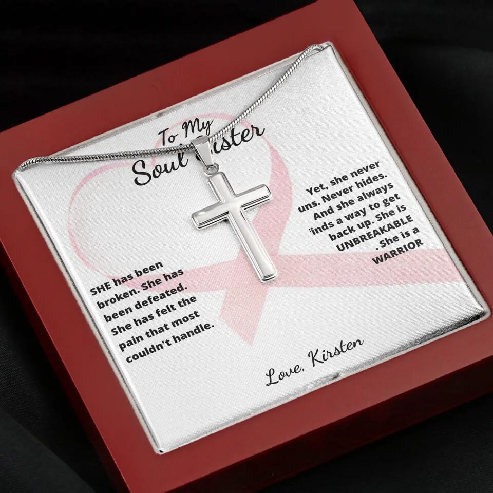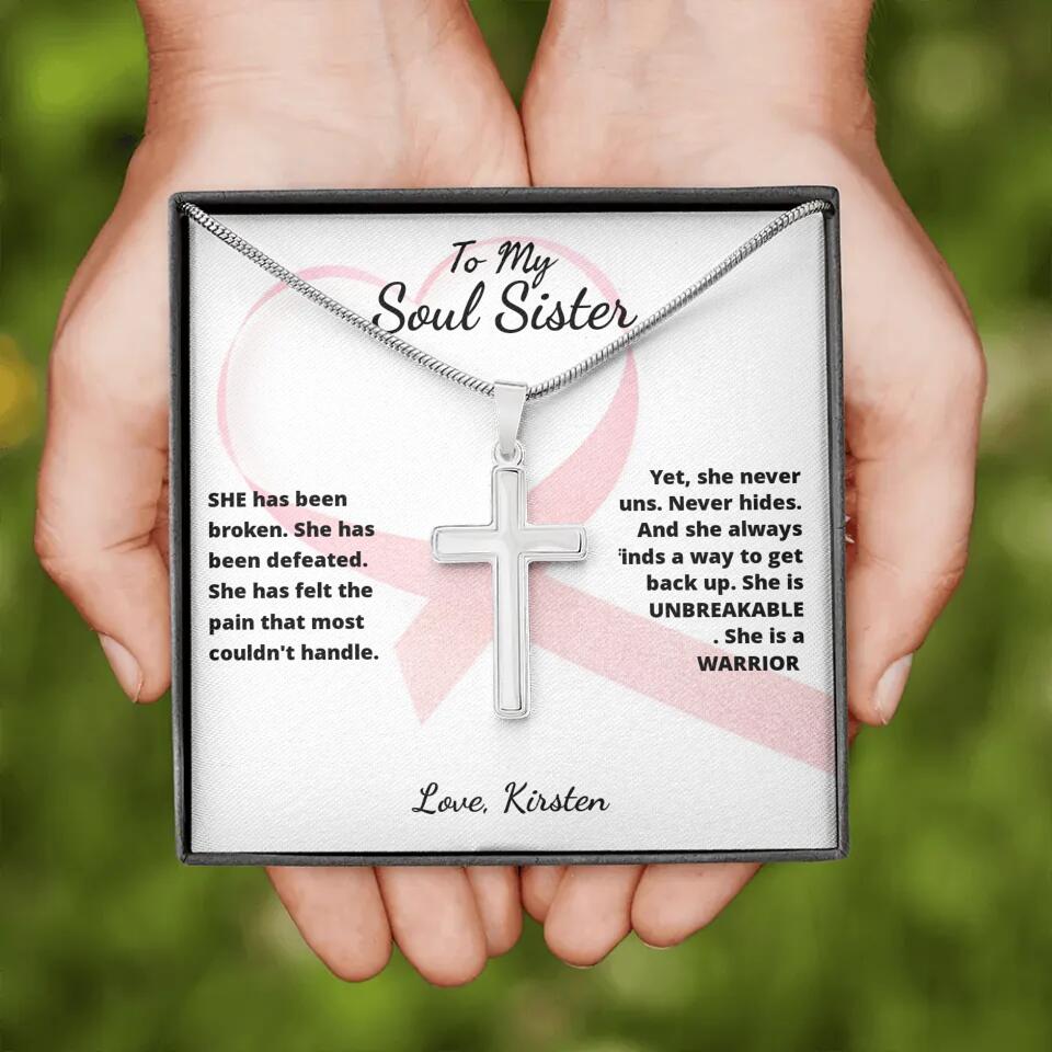 She Is A Warrior, She Is You... Cross Necklace with Personalized Message Card!