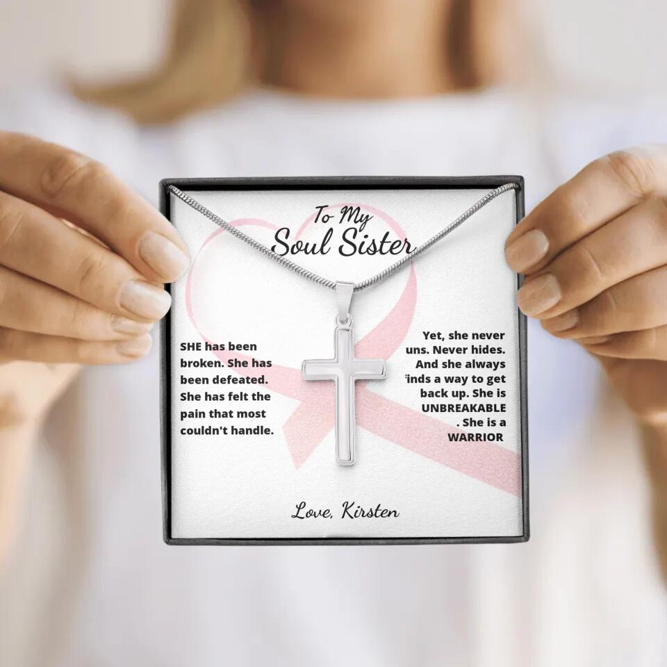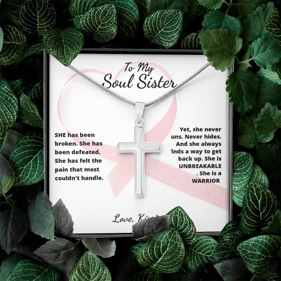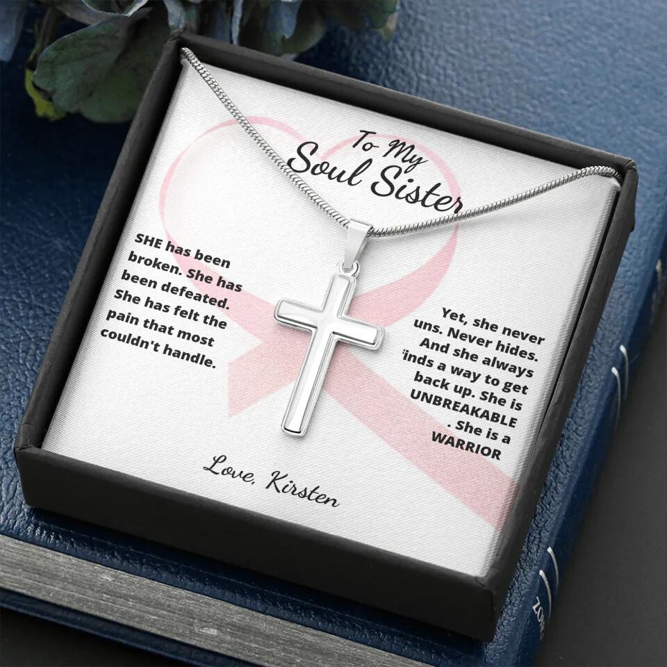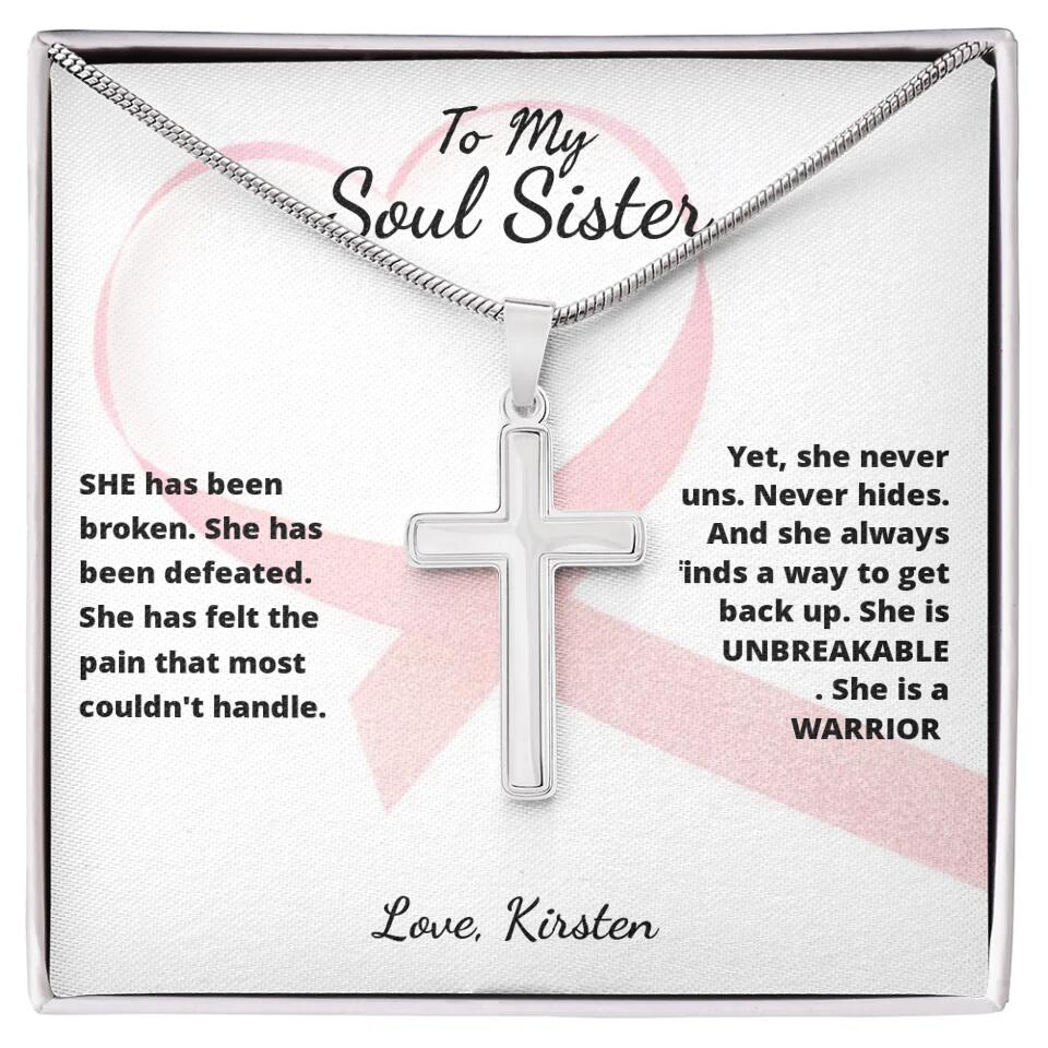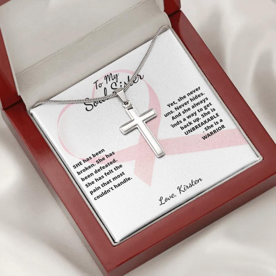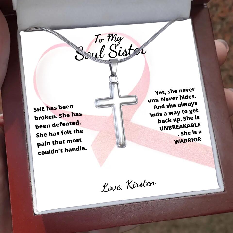 She Is A Warrior, She Is You... Cross Necklace with Personalized Message Card!