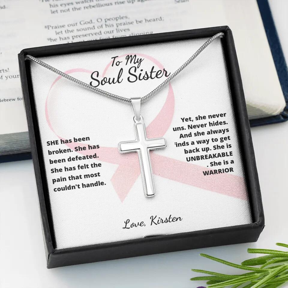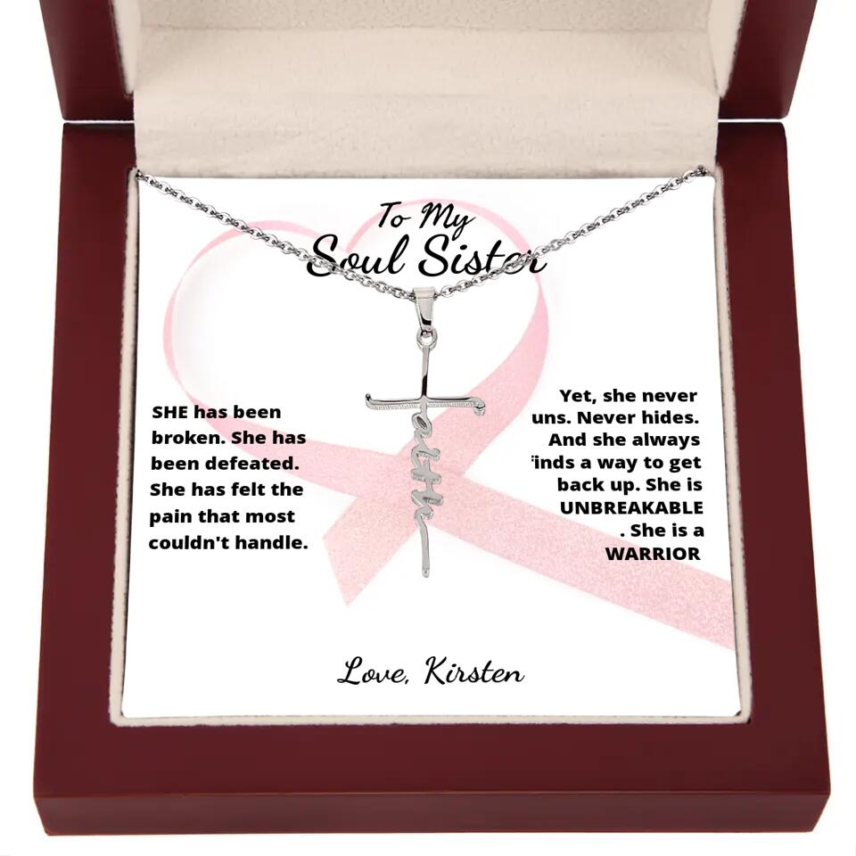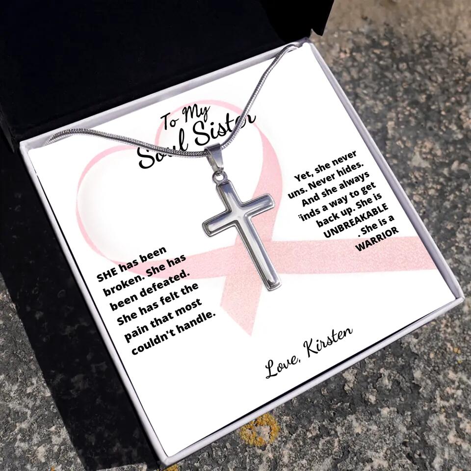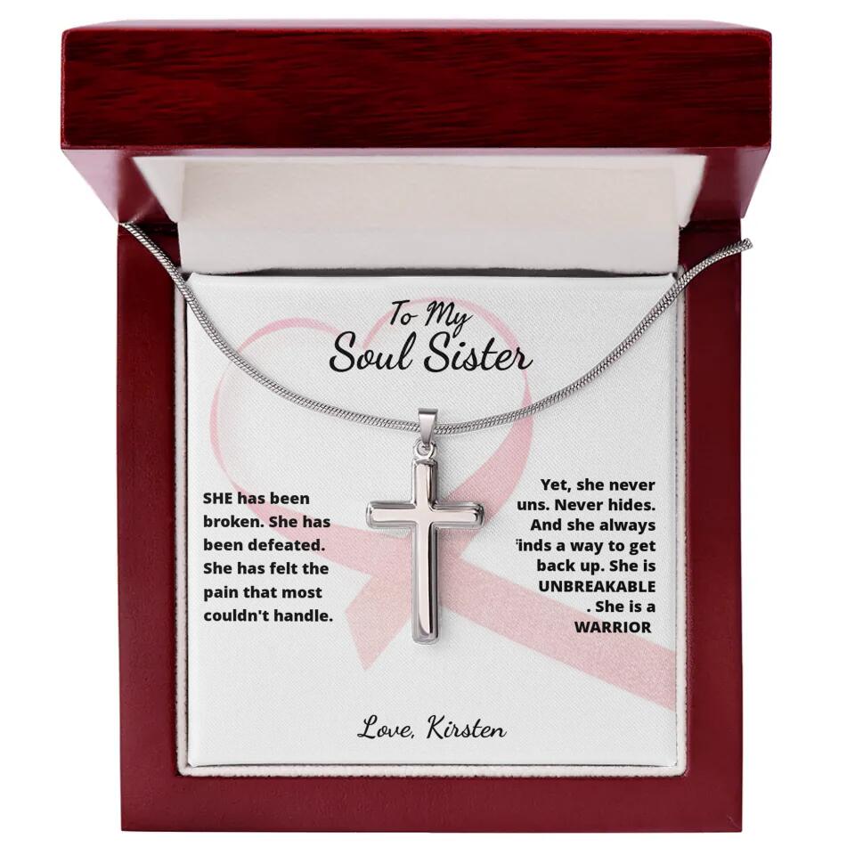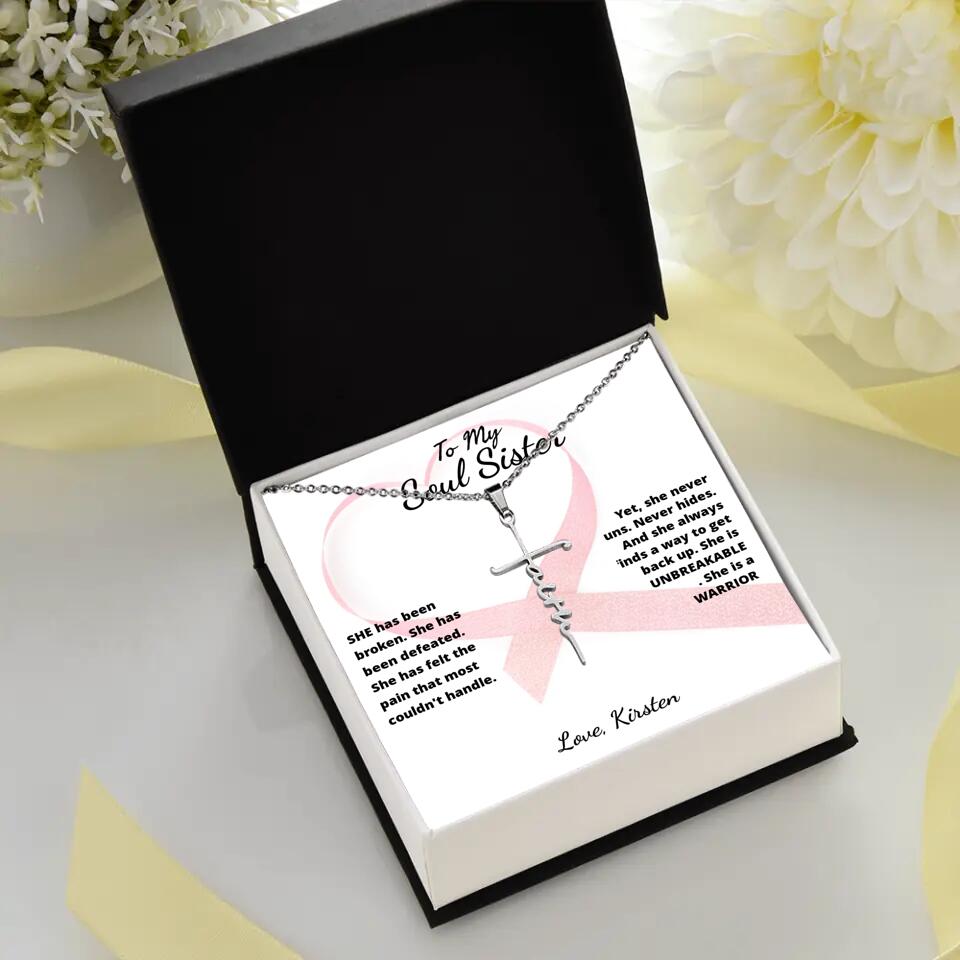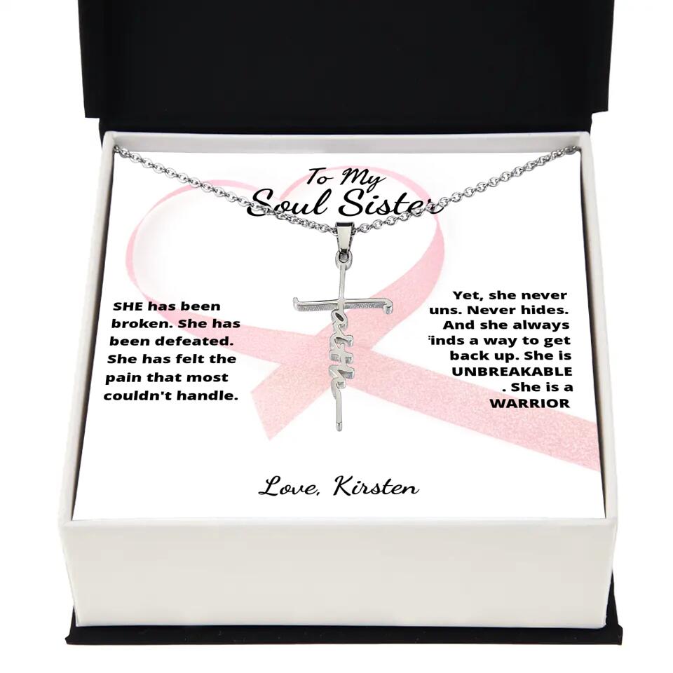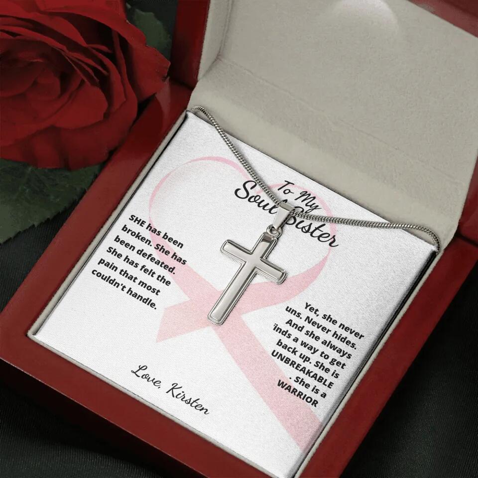 She Is A Warrior, She Is You... Cross Necklace with Personalized Message Card!
