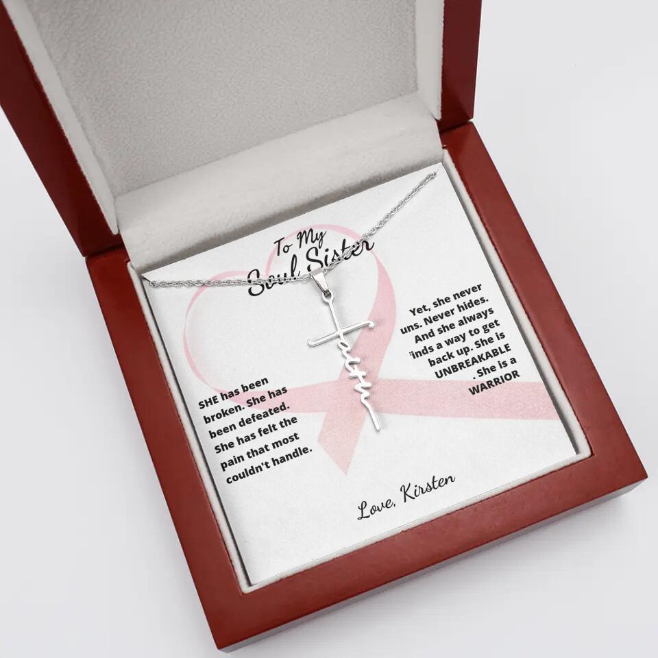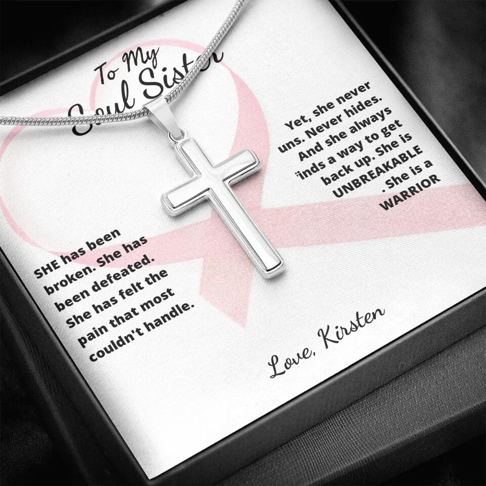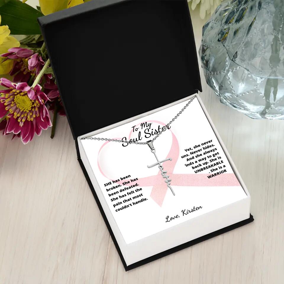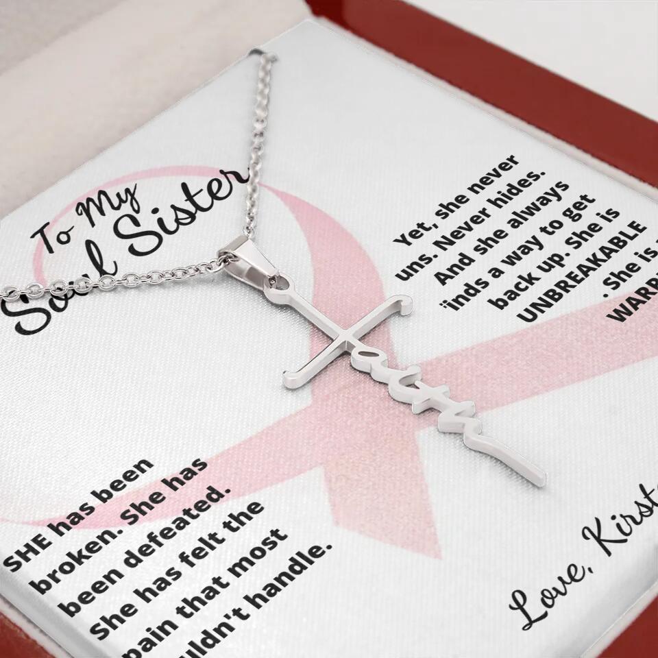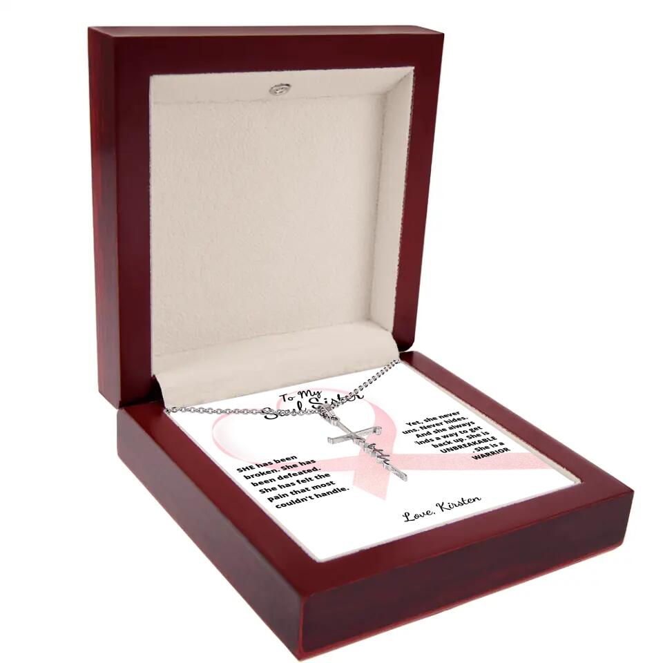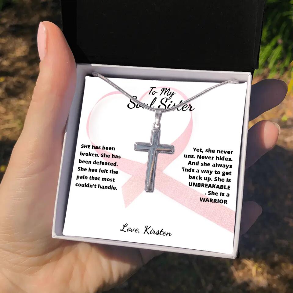 She Is A Warrior, She Is You... Cross Necklace with Personalized Message Card!