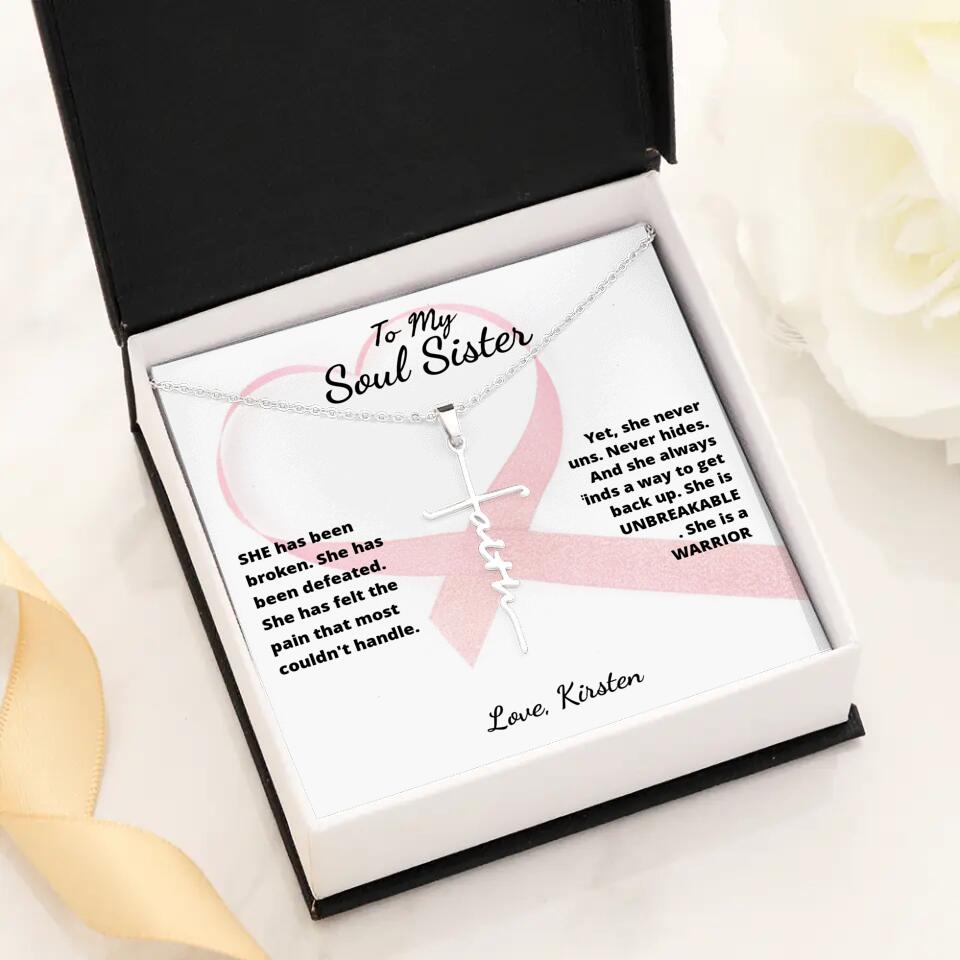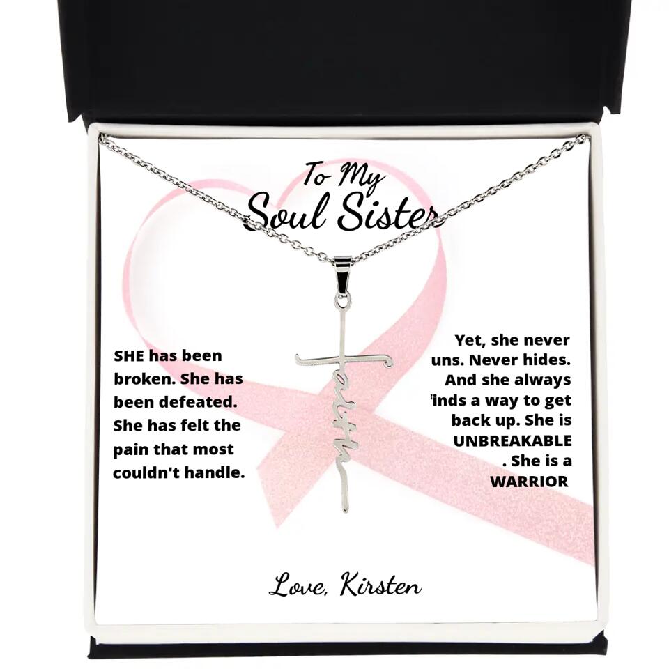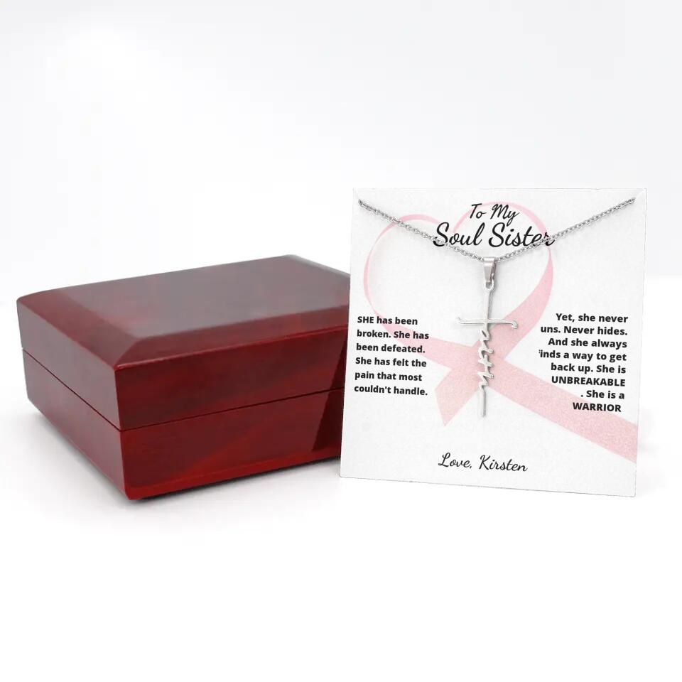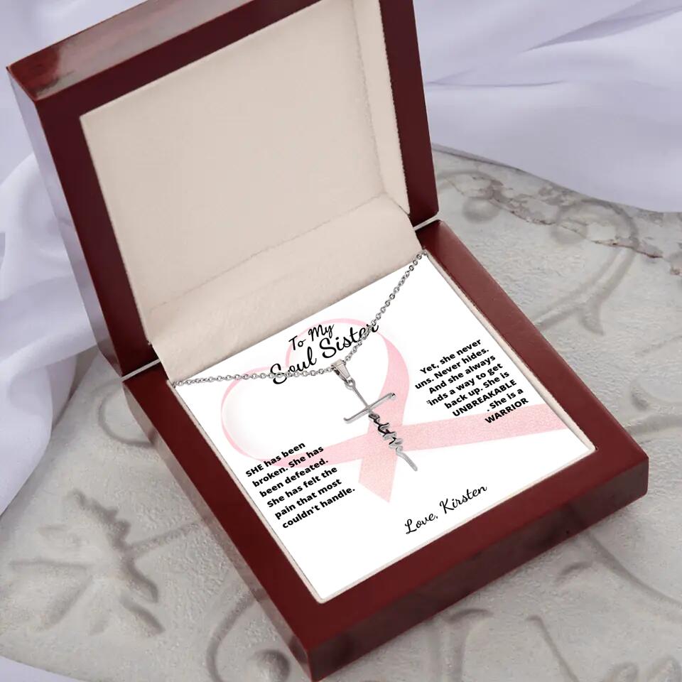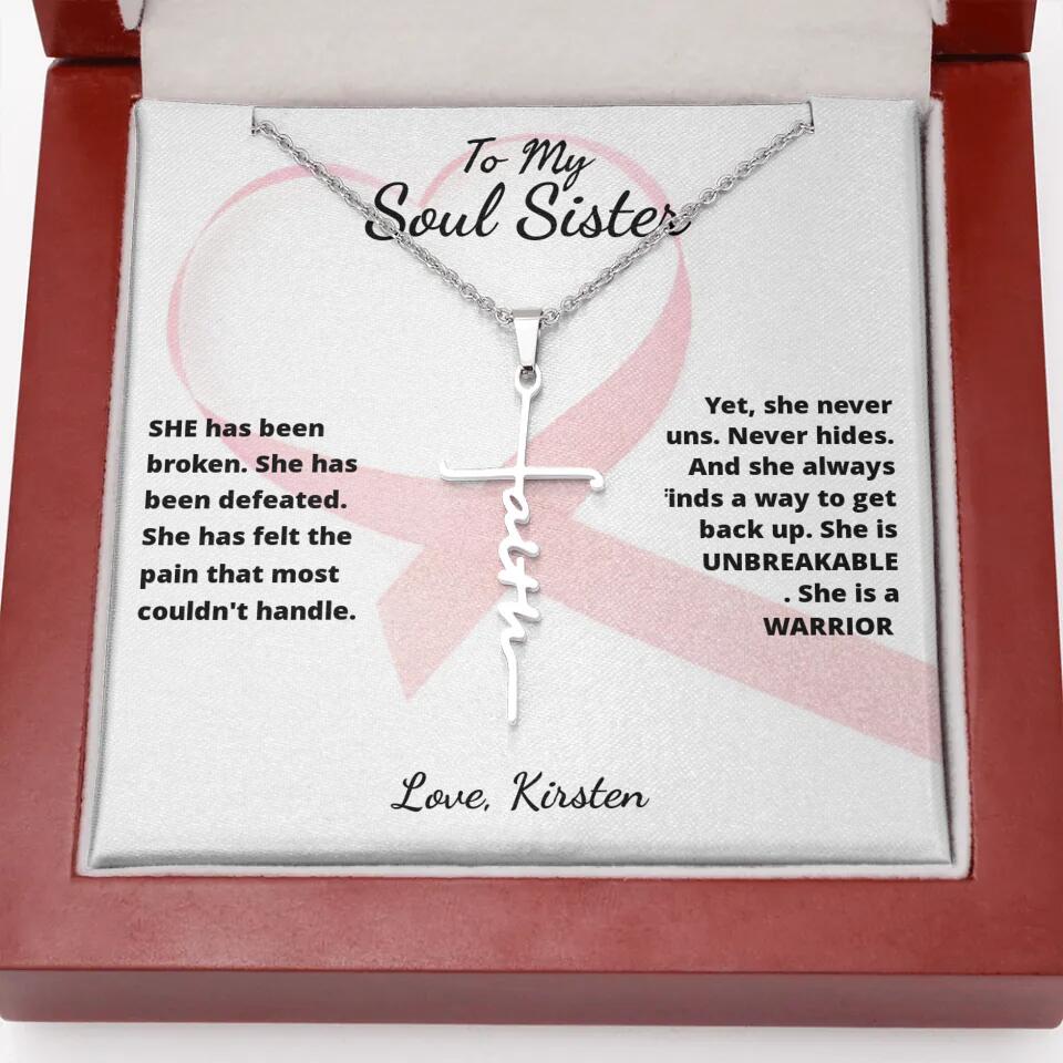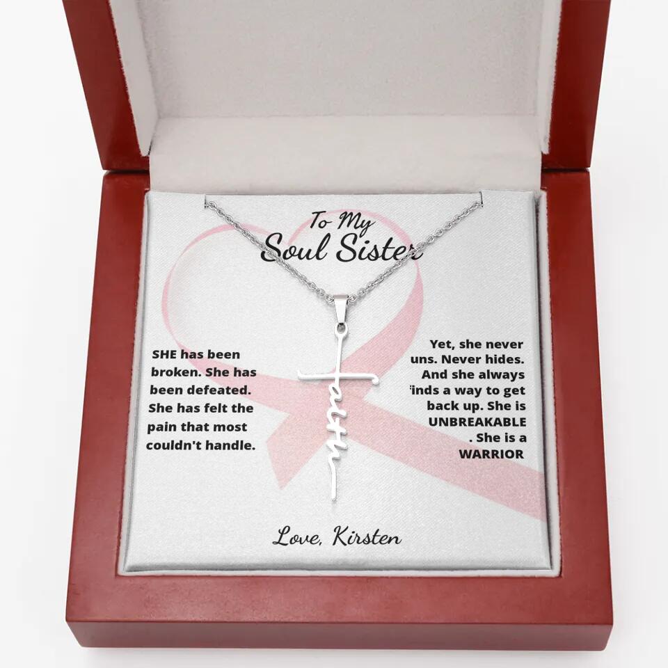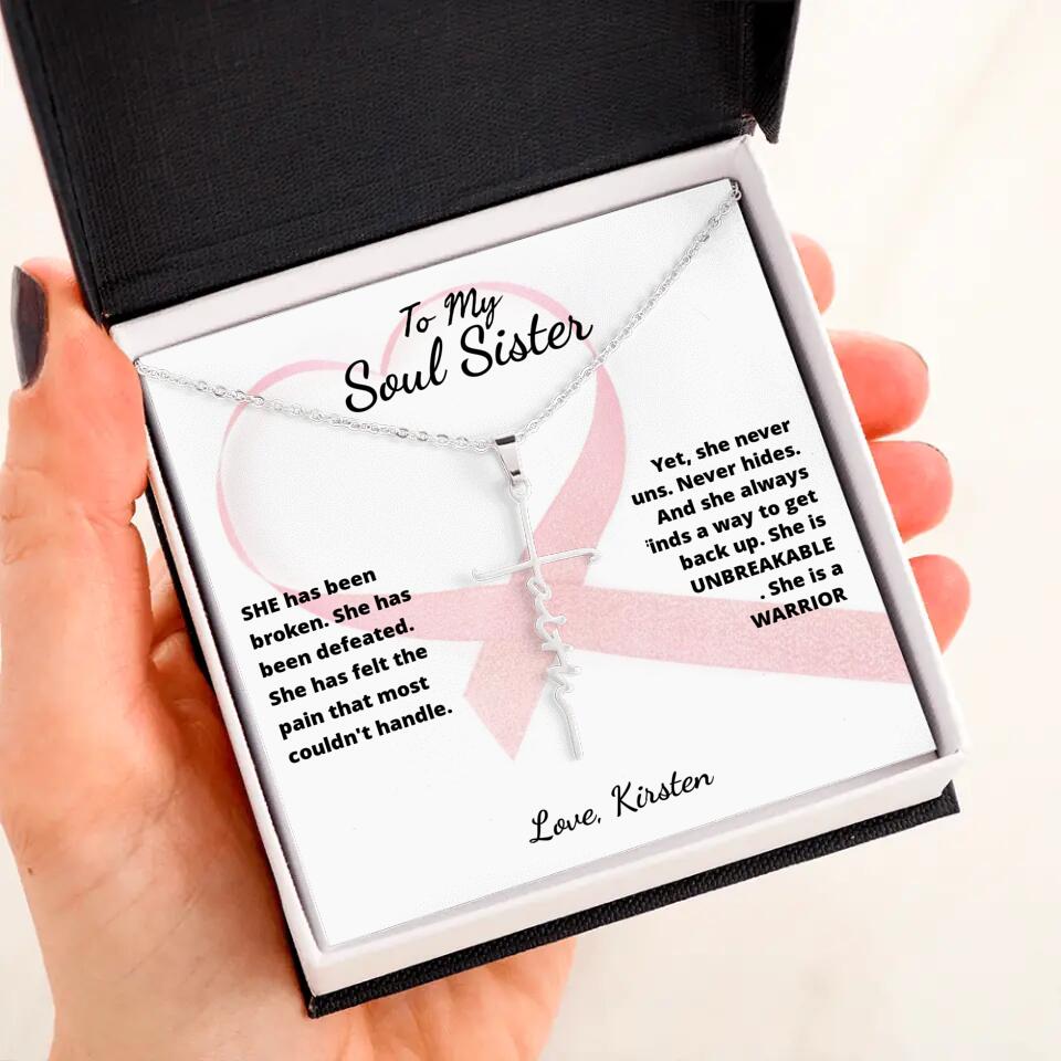 She Is A Warrior, She Is You... Cross Necklace with Personalized Message Card!