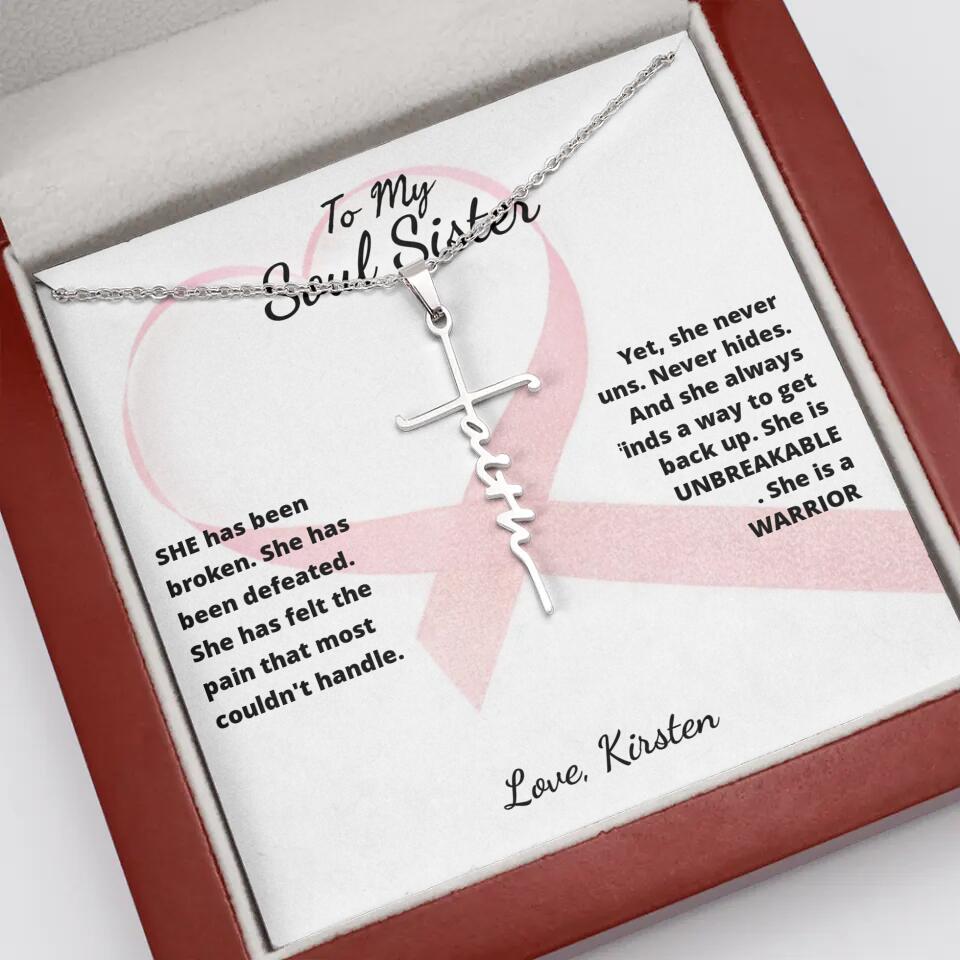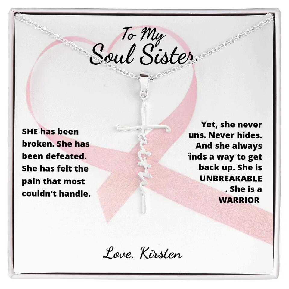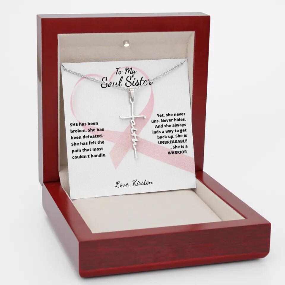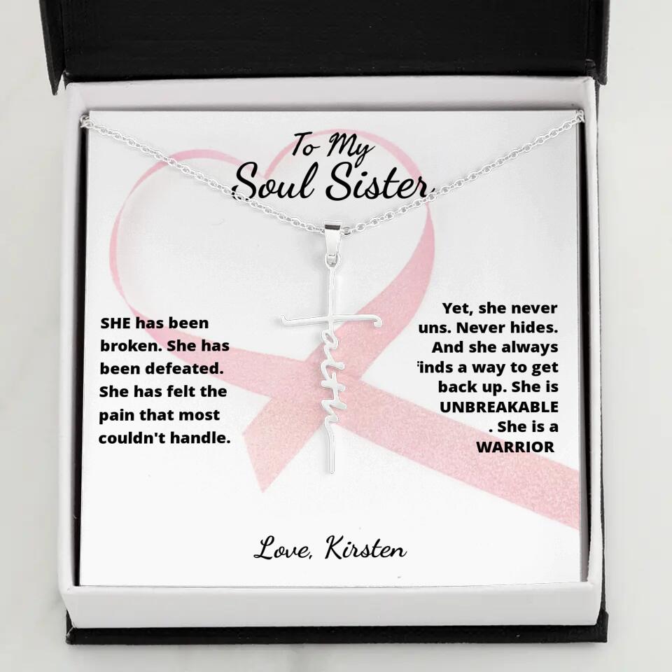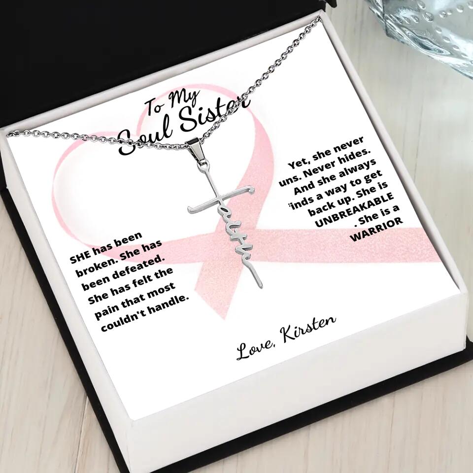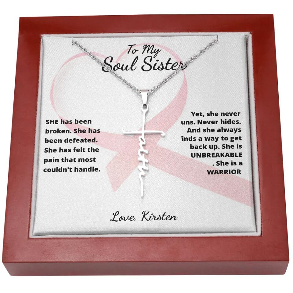 She Is A Warrior, She Is You... Cross Necklace with Personalized Message Card!
