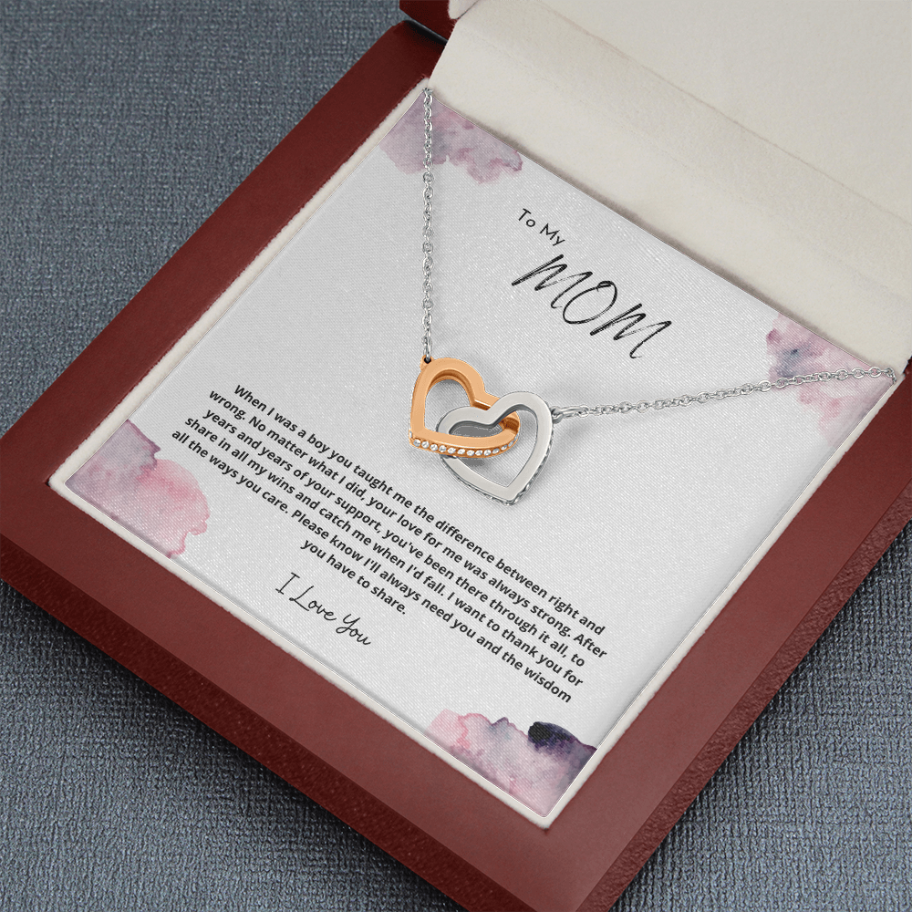 Two hearts embellished with Cubic Zirconia stones, interlocked together as a symbol of never-ending love. Made with high quality polished surgical steel. Cable chain measures 18 inches with a 4 inch extension, and fastens with a lobster clasp.