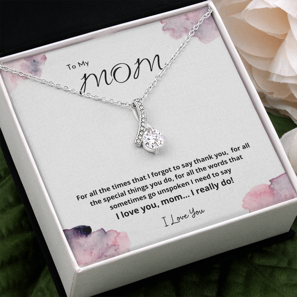 Melt her heart with this ALLURING BEAUTY necklace gift! The petite ribbon shaped pendant is finished with 14K white gold over stainless steel, and is embellished with dainty clear crystals surrounded by a sparkling 7mm round cut Cubic Zirconia.