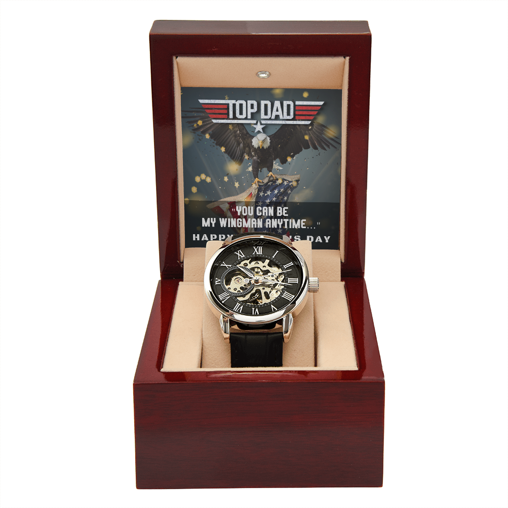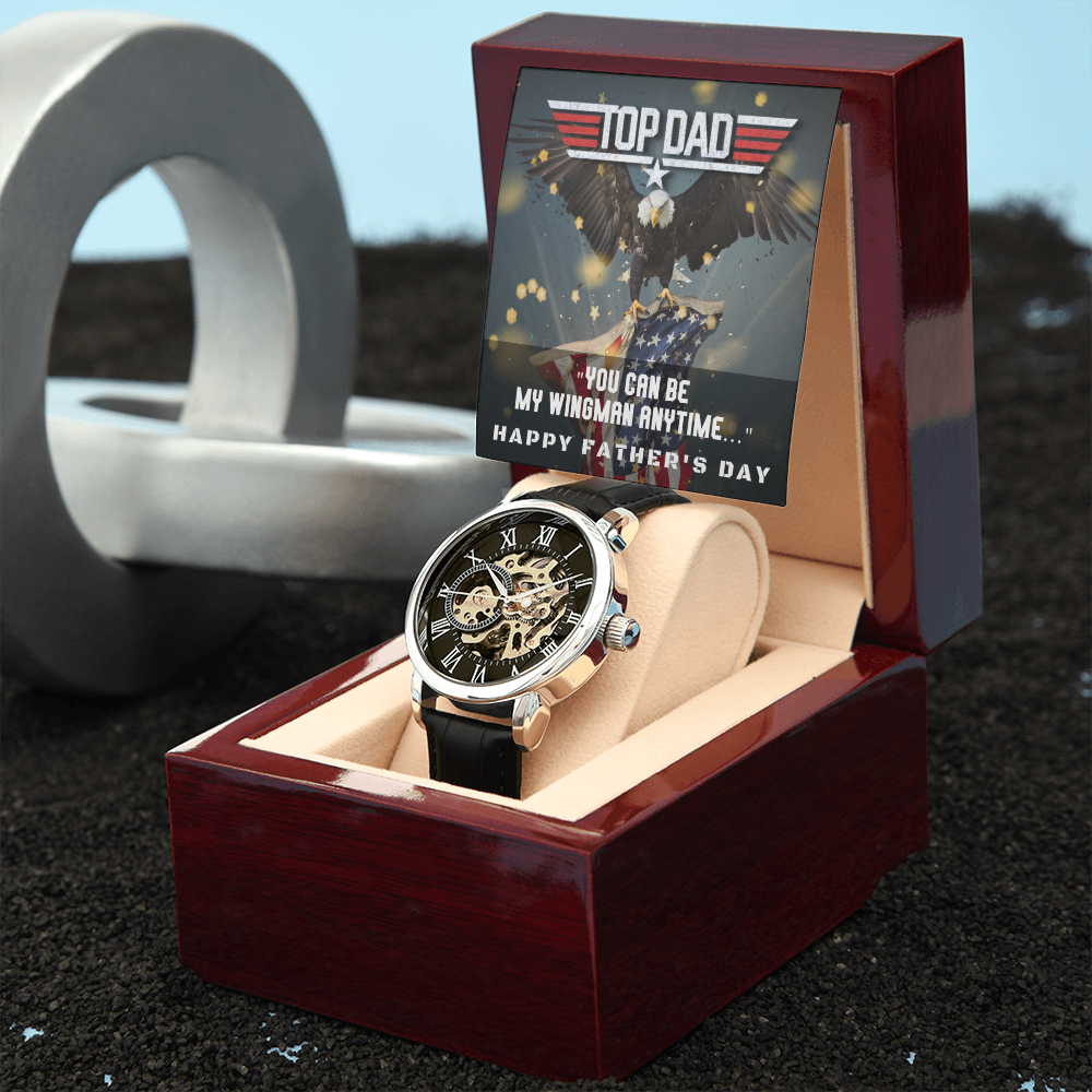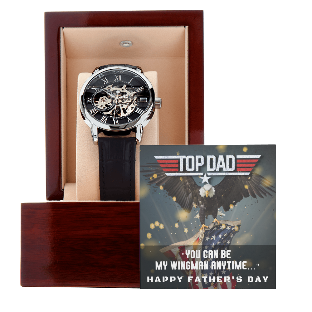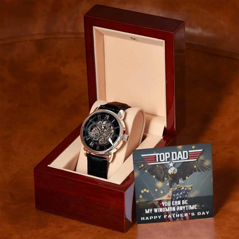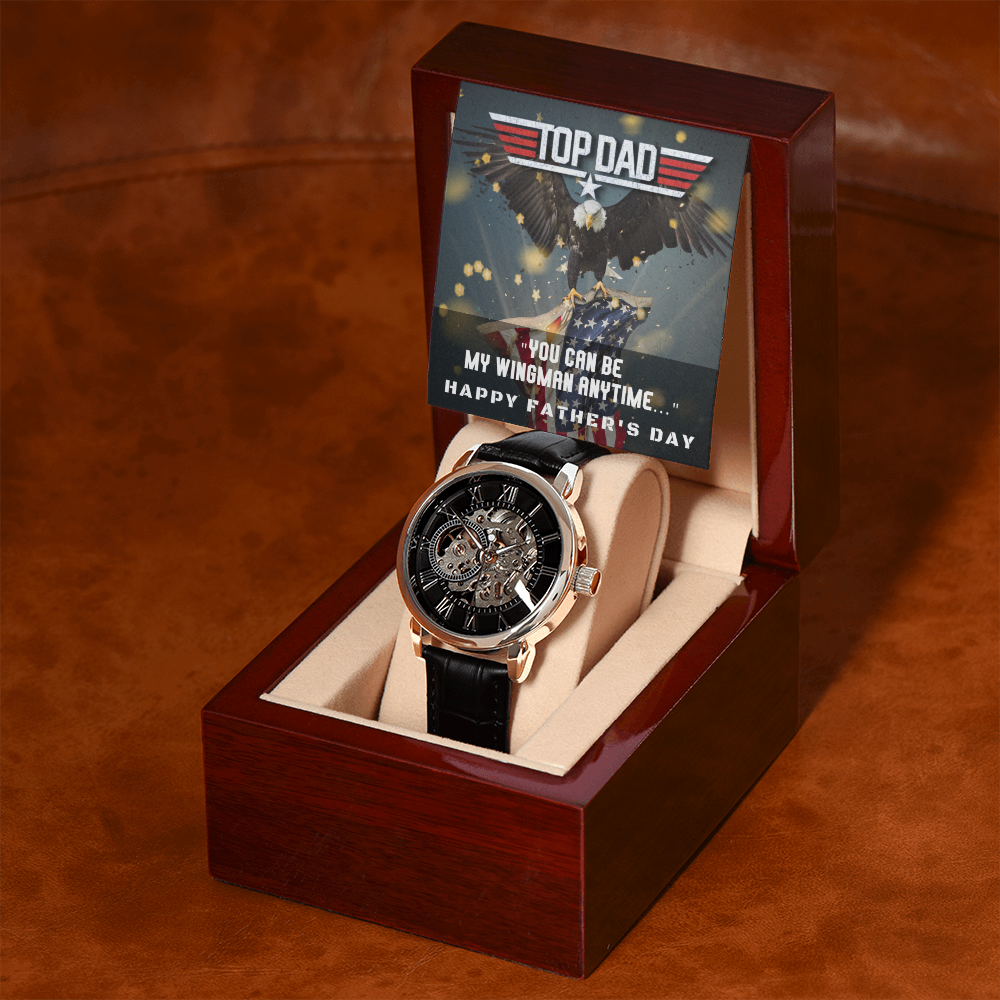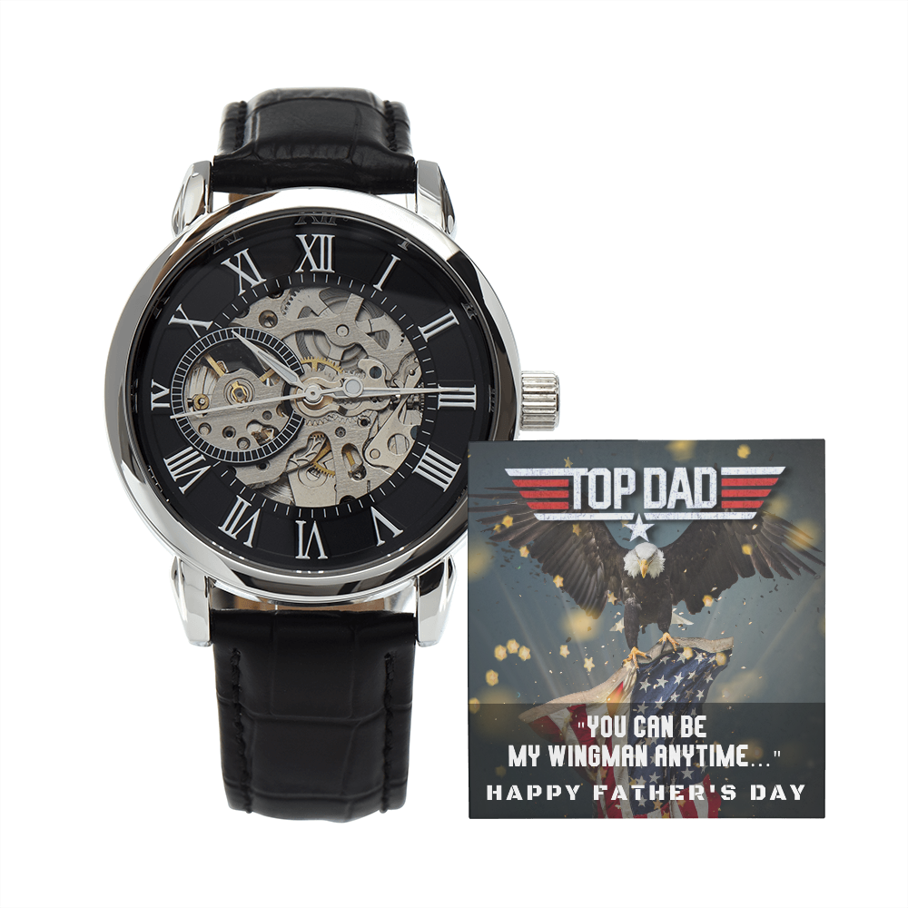 Give the gift of luxury with this handsome and daring timepiece. The Men's Openwork Watch is the perfect blend of classic design and modern styling, making it an essential accessory for your remarkable style. This watch sports a genuine leather strap, is splash resistant, and has increased durability thanks to hardened mineral glass. Our unique skeleton dial feature allows you to peer directly into the inner workings of your watch. Beautifully crafted to be automatic, this watch requires motion instead of batteries. You will keep precise time simply by wearing it, no winding necessary. This magnificent piece makes the perfect gift for yourself or any man in your life looking to add a tasteful element into his wardrobe.